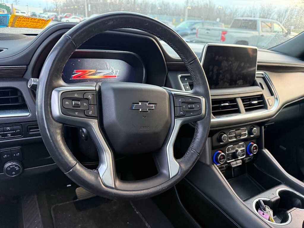 Professionally Detailed, NEW Oil & Filter Change, 1st & 2nd Row Color-Keyed Carpeted Floor Mats, 2-Speed Active Electronic AutoTrac Transfer Case, 2nd Row Pwr Release 60/40 Split-Folding Bench Seat, 3rd Row 60/40 Power-Folding Split-Bench Seat, Auto-Dimming Inside Rear-View Mirror, Automatic Stop/Start, Black Tubular Assist Steps, Bose 9-Speaker Stereo Audio System Feature, Bright Front & Rear Door Sill Plates, Color-Keyed Carpeting Floor Covering, Driver & Front Outboard Passenger Airbags, Driver Alert Package, Enhanced Driver Information Center, Floor Console w/Storage Area, Front High-Approach Angle Fascia, Hands-Free Rear Power Programmable Liftgate, HD Surround Vision, Heated 2nd Row Outboard Seats, Heated Steering Wheel, Hill Descent Control, Infotainment Display, Lane Change Alert w/Side Blind Zone Alert, Leather-Wrapped Steering Wheel, LED Daytime Running Lamps, Luxury Package, Memory Settings, Memory Settings for Driver, Outside Heated Power-Adjustable Mirrors, Power Tilt & Telescopic Steering Column, Preferred Equipment Group 2Z7, Rear Cross Traffic Alert, Rear Pedestrian Alert, Red Horizontal-Mounted Recovery Hooks, Remote Start, SiriusXM Radio w/360L, Start/Stop System Disable Button, Universal Home Remote, Wireless Charging. Clean CARFAX. Certified. 2022 Chevrolet Tahoe Z71 Dark Ash Metallic