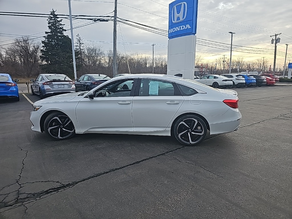 Accord Sport, 4D Sedan, 1.5T I4 DOHC 16V Turbocharged VTEC, CVT, FWD, Black w/Cloth Seat Trim, 4-Wheel Disc Brakes, 8 Speakers, Adaptive Cruise Control: Adaptive Cruise Control (ACC) with Low-Speed Follow, Alloy wheels, Apple CarPlay/Android Auto, Auto High-beam Headlights, Automatic temperature control, Dual front impact airbags, Dual front side impact airbags, Electronic Stability Control, Forward collision: Collision Mitigation Braking System (CMBS) + FCW mitigation, Front Bucket Seats, Front Center Armrest, Front dual zone A/C, Front fog lights, Leather steering wheel, Power door mirrors, Power driver seat, Radio data system, Radio: 180-Watt AM/FM Audio System, Remote keyless entry, Speed-sensing steering, Speed-Sensitive Wipers, Steering wheel mounted audio controls, Wheels: 19" Machine-Finished Alloy w/Black Inserts. 2021 Honda Accord Sport Platinum White Pearl