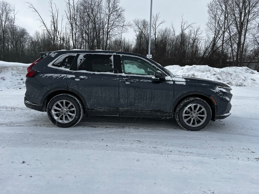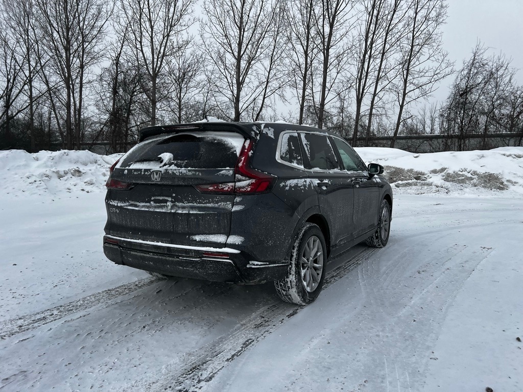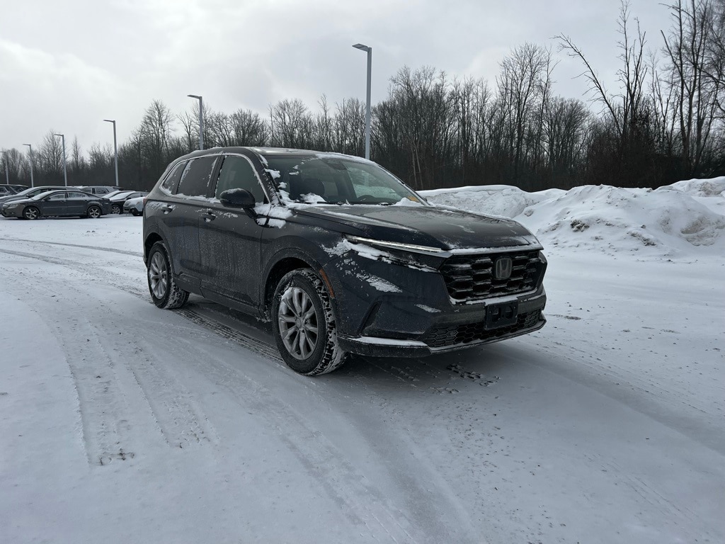 CR-V EX-L, 4D Sport Utility, 1.5L I4 DOHC 16V, CVT, AWD, Meteorite Gray Metallic, Black w/Leather Seat Trim, 4-Wheel Disc Brakes, 8 Speakers, Adaptive Cruise Control: Adaptive Cruise Control (ACC) with Low-Speed Follow, Alloy wheels, Auto High-beam Headlights, Automatic temperature control, Dual front impact airbags, Dual front side impact airbags, Electronic Stability Control, Exterior Parking Camera Rear, Front Center Armrest, Front dual zone A/C, Fully automatic headlights, Heated door mirrors, Heated Front Bucket Seats, Memory seat, Power Liftgate, Power moonroof, Power passenger seat, Radio data system, Radio: 320-Watt AM/FM/HD/SiriusXM Audio System, Rear window wiper, Remote keyless entry, Speed-sensing steering, Speed-Sensitive Wipers, Steering wheel mounted audio controls, Turn signal indicator mirrors, Wheels: 18" Sparkle Silver Metallic, Wireless Apple CarPlay/Wireless Android Auto. 2023 Honda CR-V EX-L Meteorite Gray Metallic