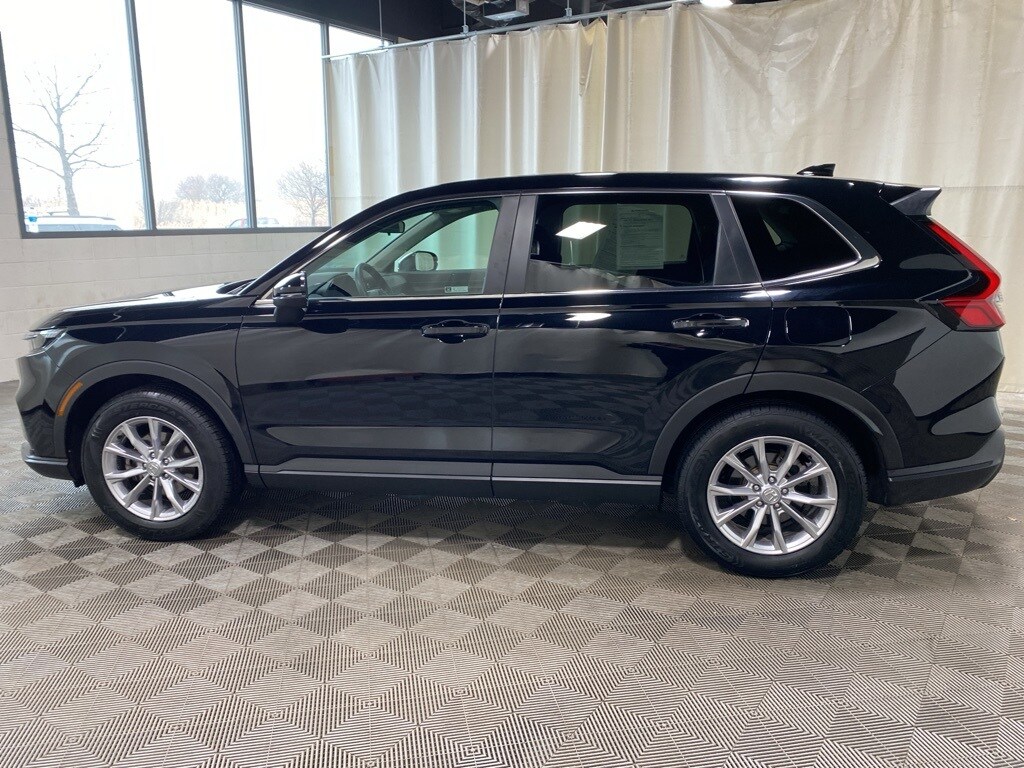 Certified. CARFAX One-Owner. Black 2023 Honda CR-V EX AWD CVT 1.5L I4 DOHC 16V Dealer Serviced, Regular Oil Changes, Adaptive Cruise Control: Adaptive Cruise Control (ACC) with Low-Speed Follow, Apple CarPlay/Android Auto, Compass, Front dual zone A/C, Heated door mirrors, Heated Front Bucket Seats, Power moonroof, Remote keyless entry, Steering wheel mounted audio controls, Turn signal indicator mirrors, Wheels: 18" Sparkle Silver Metallic.