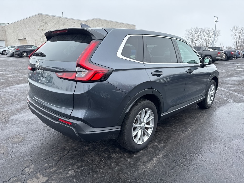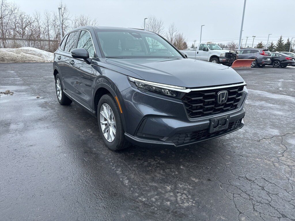 CR-V EX-L, 4D Sport Utility, 1.5L I4 DOHC 16V, CVT, AWD, 4-Wheel Disc Brakes, 8 Speakers, Adaptive Cruise Control: Adaptive Cruise Control (ACC) with Low-Speed Follow, Alloy wheels, Auto High-beam Headlights, Automatic temperature control, Blind Spot Information (BSI) System warning, Dual front impact airbags, Dual front side impact airbags, Electronic Stability Control, Exterior Parking Camera Rear, Four wheel independent suspension, Front Center Armrest, Front dual zone A/C, Fully automatic headlights, Heated door mirrors, Heated Front Bucket Seats, Leather Seat Trim, Memory seat, Power door mirrors, Power Liftgate, Power moonroof, Power passenger seat, Radio data system, Radio: 320-Watt AM/FM/HD/SiriusXM Audio System, Rear window defroster, Rear window wiper, Remote keyless entry, Speed-Sensitive Wipers, Steering wheel mounted audio controls, Turn signal indicator mirrors, Wheels: 18" Sparkle Silver Metallic. 2024 Honda CR-V EX-L Canyon River Blue Metallic