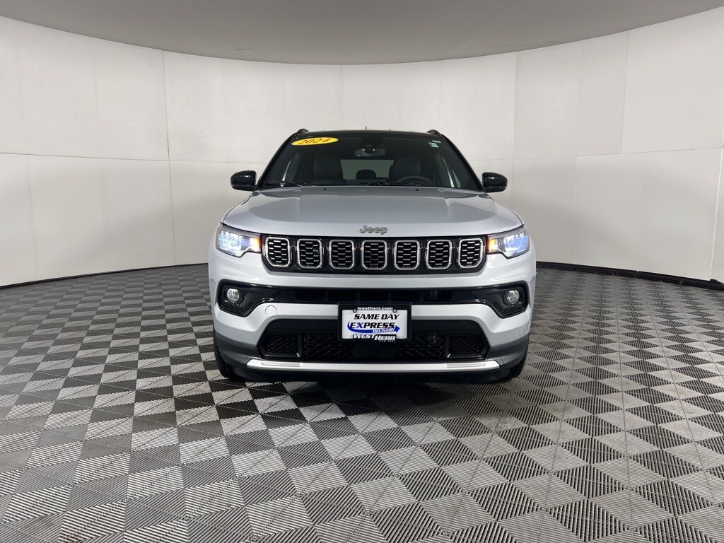 2024 Jeep Compass Limited Silver Zynith Metallic Clearcoat CARFAX One-Owner. Clean CARFAX. 4-Wheel Disc Brakes, ABS brakes, Dual front impact airbags, Dual front side impact airbags, Electronic Stability Control, Four wheel independent suspension, Front Bucket Seats, Heated front seats, Heated steering wheel, Knee airbag, Occupant sensing airbag, Overhead airbag, ParkView Rear Back-Up Camera, Power driver seat, Quick Order Package 29G Limited, Remote keyless entry, Split folding rear seat, Steering wheel mounted audio controls, Tachometer, Trip computer.