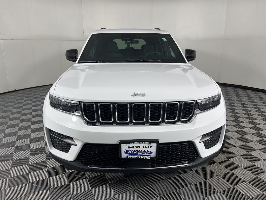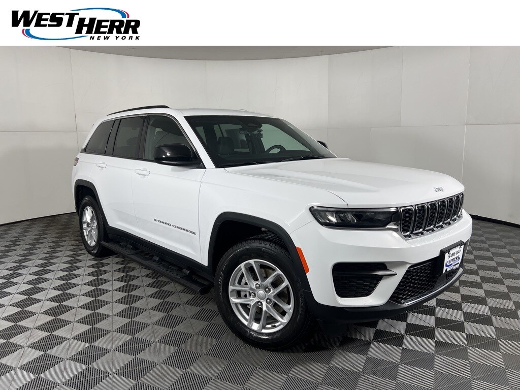 Certified. 2025 Jeep Grand Cherokee Laredo X Bright White Clearcoat CARFAX One-Owner. Clean CARFAX. 4-Wheel Disc Brakes, ABS brakes, Cloth Seats, Dual front impact airbags, Dual front side impact airbags, Electronic Stability Control, Four wheel independent suspension, Front Bucket Seats, Knee airbag, Occupant sensing airbag, Overhead airbag, ParkView Rear Back-Up Camera, Power driver seat, Remote keyless entry, Split folding rear seat, Steering wheel mounted audio controls, Tachometer, Voltmeter.