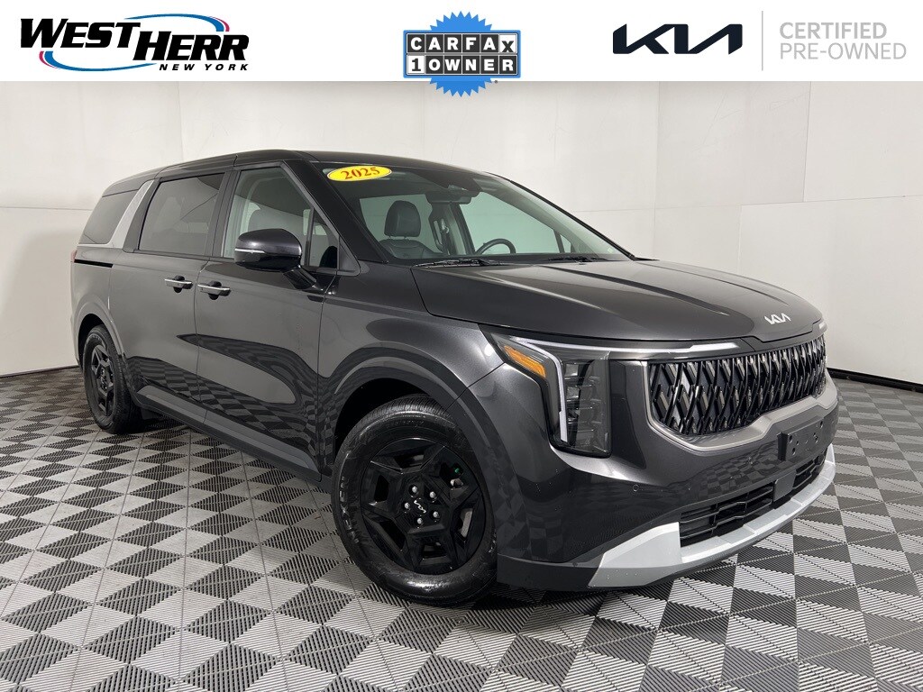 Certified. 2025 Kia Carnival LXS Certified CARFAX One-Owner. Clean CARFAX. Kia Certified Pre-Owned Certified, V6, Panthera Metal, Taupe/Off-Black Artificial Leather, Heated Front Seats, Apple Car Play and Android Auto, Back Up Camera, Touch Screen Radio, Power Driver Seat, Dual Zone Climate Control, Bluetooth, Remote Start, 8-Pass Seating w/ 2nd Row Child Minding Seat, Power Driver's Seat w/ Power Lumbar, Forward Collision-Avoidance Assist, Lane Keeping Assist & Lane Following Assist, 3rd Row Sinking Seat w/ 60/40 Split, Multi-MFR LED Headlights & LED Daytime Running Lights, Heated Outside Mirrors w/ Turn Signal Indicators, 6.5J x 17" Alloy Wheels, Remote keyless entry, Speed control, Steering wheel mounted audio controls.