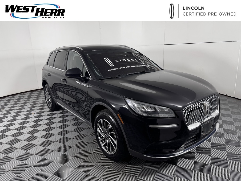 Infinite Black Metallic Clearcoat 2022 Lincoln Corsair Standard AWD 8-Speed Automatic 2.0L I4 60/40 EasyFold Rear Seat w/Power Seatback Release, Convenience Package, Elements Package, Equipment Group 101A, Heated Rear Seat, Heated Steering Wheel, Heated/Ventilated Driver & Front Passenger Seats, Rain Sensing Wipers, Universal Garage Door Opener, Voice-Activated Touchscreen Navigation System, Windshield Wiper De-Icer.