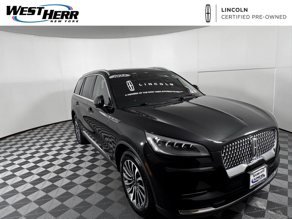Certified. Infinite Black Metallic Clearcoat 2023 Lincoln Aviator Standard AWD 10-Speed Automatic 3.0L V6 10 Speakers, 2nd Row 40/Mini Console/40 Dual Captain's Chairs, ABS brakes, Air Conditioning, AM/FM radio: SiriusXM, Auto High-beam Headlights, Automatic temperature control, Elements Package, Equipment Group 100A, Four wheel independent suspension, Fully automatic headlights, Heated 2nd Row Outboard Seats, Heated Steering Wheel, Heated VisioBlade Wipers, HVAC memory, Illuminated entry, Knee airbag, Lincoln Soft Touch Heated Front Captain's Chairs, Panoramic Vista Roof w/Power Shade, Power driver seat, Power Liftgate, Premium Package, SYNC 3 Communication & Entertainment System, Wheels: 20" Bright-Machined Aluminum.
