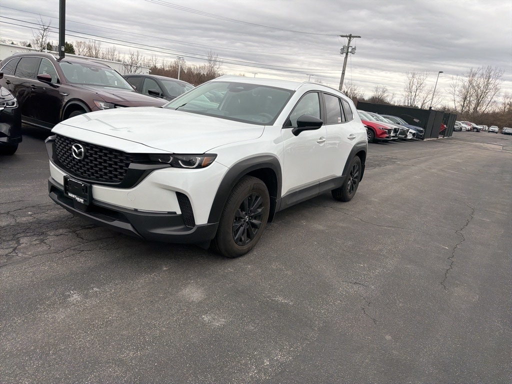 Certified. Clean CARFAX. CARFAX One-Owner. 4D Sport Utility wind chill pearl 2025 Mazda CX-50 25/31 City/Highway MPG 2.5 S Preferred Package AWD 6-Speed Automatic SKYACTIV® 2.5L 4-Cylinder DOHC 16V 25/31 City/Highway MPG ONE OWNER, CLEAN CARFAX/NO ACCIDENTS REPORTED, REMAINDER OF FACTORY WARRANTY, BLUETOOTH, BACK UP CAMERA, ALL WHEEL DRIVE, APPLE CARPLAY/ANDROID AUTO, PROFESSIONALLY DETAILED, CX-50 2.5 S Preferred Package, SKYACTIV® 2.5L 4-Cylinder DOHC 16V, AWD, ABS brakes, AppLink/Apple CarPlay and Android Auto, Auto High-beam Headlights, Black Lug Nuts and Black Wheel Locks, Brake assist, Bumpers: body-color, Carpet Cargo Mat, Dual front impact airbags, Dual front side impact airbags, Electronic Stability Control, Emergency communication system: MAZDA CONNECT, Exterior Parking Camera Rear, Front and Rear Splash Guards, Front dual zone A/C, Fully automatic headlights, Half Leatherette Seat Trim, Heated door mirrors, Heated Front Bucket Seats, Heated front seats, Illuminated entry, Knee airbag, Leather Shift Knob, Leather steering wheel, Occupant sensing airbag, Overhead airbag, Overhead console, Panic alarm, Power door mirrors, Power driver seat, Power Liftgate, Radio data system, Radio: AM/FM/HD 8-Speaker Audio Sound System, Rain sensing wipers, Rear seat center armrest, Rear window defroster, Rear window wiper, Remote keyless entry, Steering wheel mounted audio controls, Telescoping steering wheel, Turn signal indicator mirrors, Variably intermittent wipers, Wheels: 17" x 7J Aluminum Alloy Black Metallic Finish, Wind Chill Pearl Paint Charge.