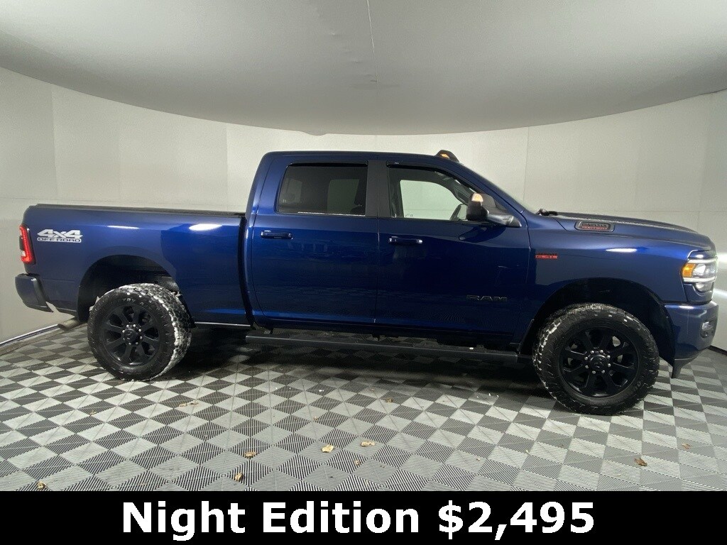 Certified. 2021 Ram 2500 Big Horn Patriot Blue Pearlcoat CARFAX One-Owner. 115V Auxiliary Front Power Outlet, 115V Auxiliary Rear Power Outlet, 2 Way Rear Headrest Seat, 220 Amp Alternator, 2nd Row In Floor Storage Bins, 4 Way Front Headrests, 40/20/40 Split Bench Seat, 8.4" Touchscreen Display, Air Conditioning ATC w/Dual Zone Control, Apple CarPlay, Auto-Dimming Rear-View Mirror, Black Exterior Truck Badging, Black Headlamp Bezels, Black Interior Accents, Black Ram Head Tailgate Badge, Black Tail Lamp Bezels, Black Wheel Center Hub, Body Color Grille Surround, Center Hub, Center Stack Storage Drawer, Cluster 7.0" TFT Color Display, Dampened Tailgate, Dual Glove Boxes, Exterior 115V AC Outlet, Foam Bottle Insert (Door Trim Panel), Folding Flat Load Floor Storage, Footwell Courtesy Lamp, For More Info, Call 800-643-2112, Front Armrest w/Cupholders, Front Center Seat Cushion Storage, Front Fog Lamps, Front LED Fog Lamps, Front Performance Tuned Shock Absorbers, Front Seat Back Map Pockets, Gloss Black Grille Billets/Accents, Glove Box Lamp, Google Android Auto, GPS Antenna Input, Heated Front Seats, Heated Steering Wheel, Heavy Duty Snow Plow Prep Group, Hill Descent Control, Integrated Center Stack Radio, Integrated Voice Command w/Bluetooth, Leather Wrapped Steering Wheel, LED Reflector Headlamps, LED Tail Lamps, Level B Equipment Group, Locking Lower Glove Box, Lone Star IP Badge, Manual Adjust 4-Way Front Passenger Seat, Media Hub w/2 Charge Only USBs, Night Edition, Off Road Decal, Off Road Package, Off-Road Information Pages, Painted Front Bumper, Painted Rear Bumper, ParkSense Front/Rear Park Assist System, Power 2-Way Driver Lumbar Adjust, Power Adjust 8-Way Driver Seat, Power Adjust/Fold & Heated Black Tow Mirrors, Power Adjustable Pedals, Power Folding Mirrors, Premium Cloth 40/20/40 Bench Seat, Premium Lighting Group, Quick Order Package 2GZ Big Horn, Radio: Uconnect 4 w/8.4" Display, Rear 60/40 Folding Seat, Rear Dome w/On/Off Switch Lamp, Rear Performance Tuned Shock Absorbers, Rear Power Sliding Window, Rear Window Defroster, Remote Start System, Security Alarm, SiriusXM Radio Service, SiriusXM Satellite Radio, Steering Wheel Mounted Audio Controls, Sun Visors w/Illuminated Vanity Mirrors, Tow Hooks, Universal Garage Door Opener, Wheels: 18" x 8.0" Polished Aluminum, Wheels: 20" x 8.0" Black Painted Aluminum.