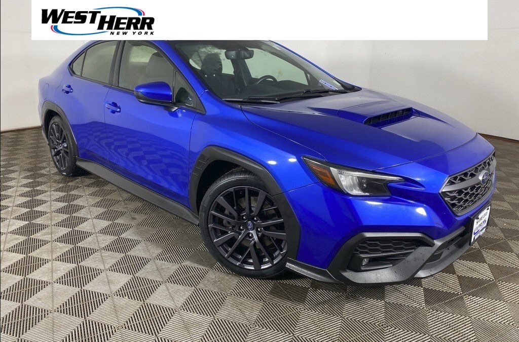 Certified. WR Blue Pearl 2022 Subaru WRX Premium AWD 6-Speed Manual 2.4L DOHC WRX Premium, 4D Sedan, 2.4L DOHC, 6-Speed Manual, AWD, WR Blue Pearl, Black Cloth, 4-Wheel Disc Brakes, Auto High-beam Headlights, Auto-Dimming Mirror w/Compass & HomeLink, Cloth Upholstery w/Red Stitching, Emergency communication system: STARLINK Safety and Security (Subscription Required), Exterior Parking Camera Rear, Four wheel independent suspension, harman kardon & Moonroof, harman/kardon Speaker System, Heated door mirrors, Heated front seats, Illuminated entry, LED Upgrade - Map & Dome Lights, Power Tilt Up Moonroof, Radio: Subaru STARLINK 11.6" Multimedia Plus Sys, Remote keyless entry, Sport steering wheel, STARLINK/Apple CarPlay/Android Auto, Steering wheel mounted audio controls, STI Short Throw Shifter (WRX), Vortex Generator, Wheels: 18" x 8.5" Dark Gray Finish Alum Alloy.