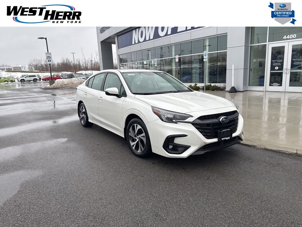 Certified. Crystal White Pearl 2025 Subaru Legacy Premium AWD Lineartronic CVT 2.5L 4-Cylinder DOHC 16V Legacy Premium, 4D Sedan, 2.5L 4-Cylinder DOHC 16V, Lineartronic CVT, AWD, Crystal White Pearl, Gray Cloth, 4-Wheel Disc Brakes, Auto High-beam Headlights, Auto-Dimming Mirror w/Compass & HomeLink, Blind Spot Detection w/Rear Cross-Traffic Alert, BSD w/RCTA & Keyless Access & LED Fog Lights, Cloth Upholstery, Exterior Parking Camera Rear, Four wheel independent suspension, Heated door mirrors, Heated Front Bucket Seats, Illuminated entry, Keyless Access w/Push Button Start, LED Fog Lights, Remote keyless entry, Turn signal indicator mirrors, Wheels: 17" x 7.5J Blk Mach Finish Aluminum-Alloy.
