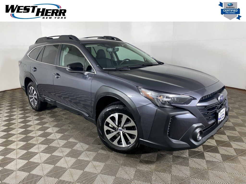 Certified. Magnetite Gray Metallic 2025 Subaru Outback Premium AWD CVT Lineartronic 2.5L 4-Cylinder DOHC 16V Outback Premium, 4D Sport Utility, 2.5L 4-Cylinder DOHC 16V, CVT Lineartronic, AWD, Magnetite Gray Metallic, Black Cloth, 4-Wheel Disc Brakes, Apple CarPlay & Android Auto, Auto High-beam Headlights, Auto-Dimming Mirror w/Compass & HomeLink, Blind Spot Detection (BSD), BSD & RCTA & Keyless Access & Push Button Start, Cloth Upholstery, Emergency communication system: MySubaru Safety (3-year free trial), Exterior Parking Camera Rear, Four wheel independent suspension, Hands-Free Power Rear Gate, Heated door mirrors, Heated Front Bucket Seats, Illuminated entry, Keyless Access w/Push Button Start, Magnetite Gray Metallic Door Edge Guards, Power Moonroof, Radio: Subaru 11.6" Multimedia System w/Navigation, Rear Cross Traffic Alert (RCTA), Remote keyless entry, Turn signal indicator mirrors, Wheels: 17" x 7J Black Aluminum-Alloy.