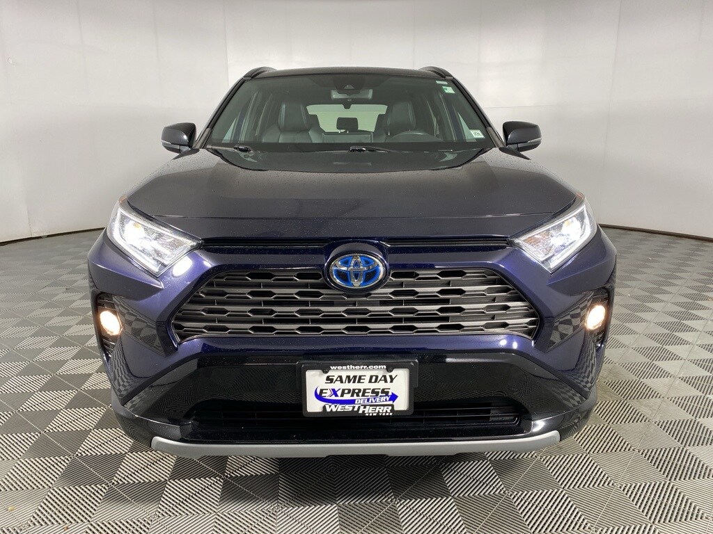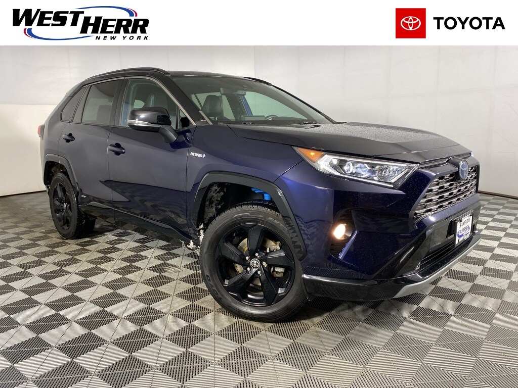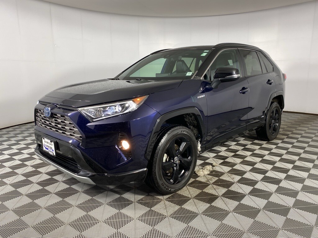 2021 Toyota RAV4 Hybrid XSE Blue Clean CARFAX. CARFAX One-Owner. 4-Wheel Disc Brakes, 6 Speakers, Air Conditioning, Anti-Theft System, Apple CarPlay/Android Auto, Brake assist, Driver vanity mirror, Dual front impact airbags, Dual front side impact airbags, Four wheel independent suspension, Front Bucket Seats, Front Center Armrest, Front Door Smart Key System w/Push Button Start, Front dual zone A/C, Front Seat Heating, Garage door transmitter: HomeLink, Heated door mirrors, Heated Front Seats, Heated front seats, Knee airbag, Lane Departure Warning System, Occupant sensing airbag, Outside temperature display, Overhead airbag, Overhead console, Power moonroof, Power steering, Radio data system, Radio: Audio Plus, Rear window defroster, Roof rack: rails only, Security system, SofTex Seat Trim (EC), Speed control, Speed-sensing steering, Split folding rear seat, Spoiler, Steering wheel mounted audio controls, Telescoping steering wheel, Tilt steering wheel, Trip computer. 41/38 City/Highway MPG