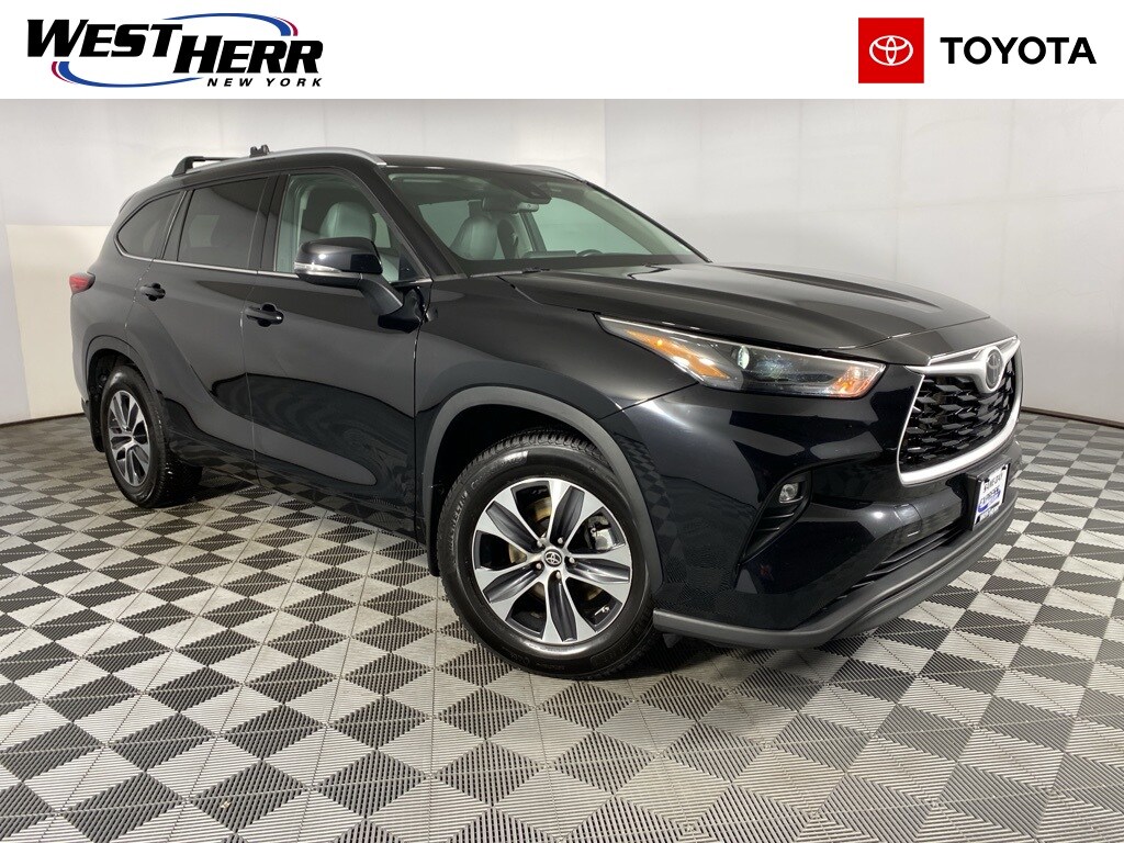 Certified. 2022 Toyota Highlander XLE Black Clean CARFAX. CARFAX One-Owner. 3rd row seats: split-bench, 4-Wheel Disc Brakes, 6 Speakers, ABS brakes, Air Conditioning, AM/FM radio: SiriusXM, Auto-dimming Rear-View mirror, Brake assist, Bumpers: body-color, Delay-off headlights, Driver vanity mirror, Dual front impact airbags, Dual front side impact airbags, Exterior Parking Camera Rear, Four wheel independent suspension, Front Bucket Seats, Front Center Armrest, Front fog lights, Front reading lights, Heated door mirrors, Heated Front Bucket Seats, Heated front seats, Illuminated entry, Knee airbag, Occupant sensing airbag, Outside temperature display, Overhead airbag, Panic alarm, Passenger vanity mirror, Power driver seat, Power Liftgate, Power passenger seat, Power steering, Rear air conditioning, Rear window defroster, Reclining 3rd row seat, SofTex Seat Trim, Split folding rear seat, Spoiler, Tachometer, Telescoping steering wheel, Tilt steering wheel, Traction control, Trip computer. 20/27 City/Highway MPG
