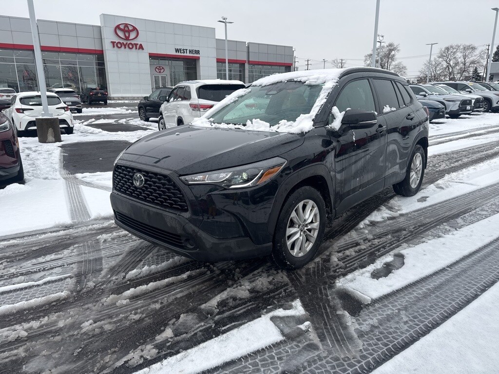 Certified. 2023 Toyota Corolla Cross LE Black Clean CARFAX. CARFAX One-Owner. 4-Wheel Disc Brakes, 6 Speakers, Air Conditioning, AM/FM radio: SiriusXM, Brake assist, Bumpers: body-color, Driver vanity mirror, Dual front impact airbags, Dual front side impact airbags, Exterior Parking Camera Rear, Fabric Seat Trim, Four wheel independent suspension, Front Bucket Seats, Front Center Armrest, Illuminated entry, Knee airbag, Leather steering wheel, Occupant sensing airbag, Overhead airbag, Power door mirrors, Power windows, Radio: 8" Toyota Multimedia, Rear side impact airbag, Rear window defroster, Remote keyless entry, Roof rack: rails only, Speed control, Split folding rear seat, Spoiler, Steering wheel mounted audio controls, Tachometer, Telescoping steering wheel, Tilt steering wheel, Trip computer. 29/32 City/Highway MPG