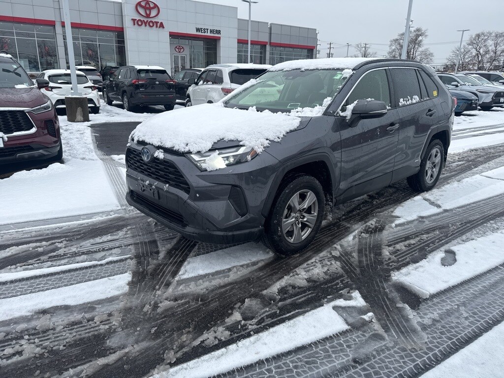Certified. 2023 Toyota RAV4 Hybrid XLE Gray Clean CARFAX. CARFAX One-Owner. 4-Wheel Disc Brakes, 6 Speakers, Air Conditioning, Auto High-beam Headlights, Brake assist, Bumpers: body-color, Driver door bin, Dual front impact airbags, Dual front side impact airbags, Front Bucket Seats, Front Center Armrest, Front dual zone A/C, Front reading lights, Front Sport Seats, Fully automatic headlights, Illuminated entry, Knee airbag, Lane Departure Warning System, Occupant sensing airbag, Overhead airbag, Overhead console, Power door mirrors, Power driver seat, Power steering, Radio data system, Radio: AM/FM/XM Audio System, Rear window defroster, Remote keyless entry, Speed control, Speed-sensing steering, Spoiler, Telescoping steering wheel, Tilt steering wheel, Trip computer. Odometer is 36752 miles below market average! 41/38 City/Highway MPG