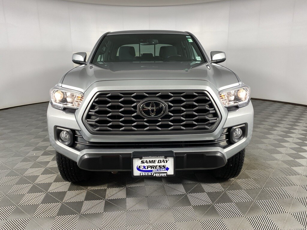 Certified. 2023 Toyota Tacoma TRD Off-Road V6 Silver CARFAX One-Owner. 6 Speakers, ABS brakes, Air Conditioning, Apple CarPlay/Android Auto, Auto High-beam Headlights, Auto-Dimming Rearview Mirror w/HomeLink, Black Overfenders, Brake assist, Bumpers: body-color, Driver door bin, Dual front impact airbags, Dual front side impact airbags, Engine Immobilizer, Exterior Parking Camera Rear, Fabric Seat Trim, Front anti-roll bar, Front Bucket Seats, Front Center Armrest, Front reading lights, Front Seats, Front wheel independent suspension, Garage door transmitter: HomeLink, Knee airbag, Leather Shift Knob, Occupant sensing airbag, Outside temperature display, Overhead airbag, Panic alarm, Power door mirrors, Radio: Audio, Rear step bumper, Split folding rear seat, Tachometer, Telescoping steering wheel, Tilt steering wheel, Trip computer, Turn signal indicator mirrors.