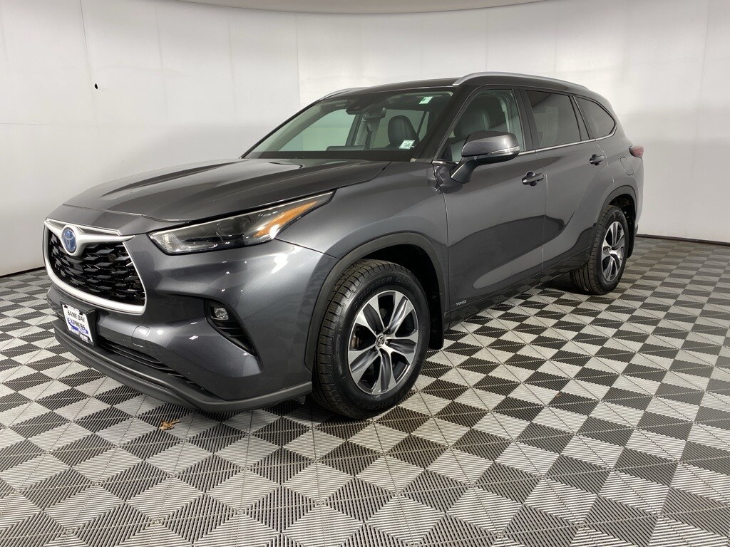 Certified. 2024 Toyota Highlander Hybrid XLE Gray CARFAX One-Owner. 3rd row seats: split-bench, 4-Wheel Disc Brakes, 6 Speakers, Air Conditioning, Apple CarPlay/Android Auto, Auto High-beam Headlights, Brake assist, Bumpers: body-color, Delay-off headlights, Driver door bin, Driver vanity mirror, Dual front side impact airbags, Four wheel independent suspension, Front Bucket Seats, Front Center Armrest, Front dual zone A/C, Fully automatic headlights, Garage door transmitter: HomeLink, Heated Front Bucket Seats, Heated front seats, Illuminated entry, Knee airbag, Leather Shift Knob, Occupant sensing airbag, Outside temperature display, Overhead airbag, Panic alarm, Passenger vanity mirror, Power door mirrors, Power driver seat, Power Liftgate, Power moonroof, Power passenger seat, Power steering, Radio: 8" Toyota Audio Multimedia, Rear reading lights, Rear window defroster, Reclining 3rd row seat, Remote keyless entry, Security system, Split folding rear seat, Spoiler, Steering wheel mounted audio controls, Telescoping steering wheel, Tilt steering wheel, Traction control, Trip computer. 35/35 City/Highway MPG