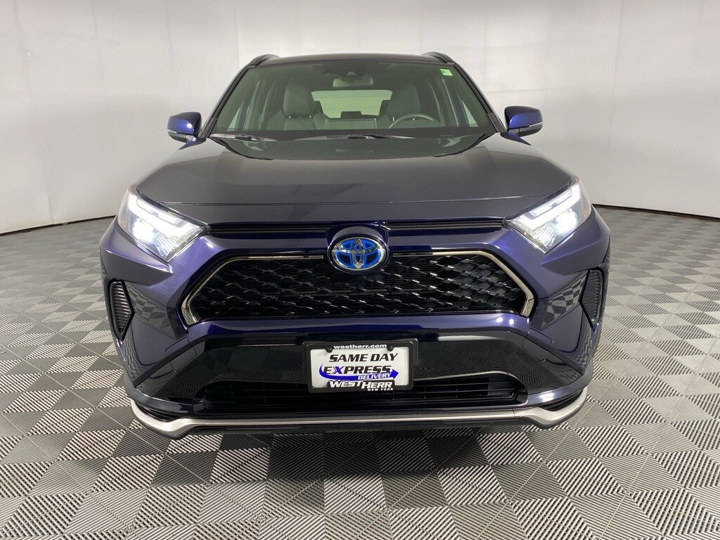 Certified. 2024 Toyota RAV4 Prime SE Blue Clean CARFAX. CARFAX One-Owner. 4-Wheel Disc Brakes, Air Conditioning, AM/FM radio: SiriusXM, Auto High-beam Headlights, Automatic temperature control, Bumpers: body-color, Driver vanity mirror, Dual front impact airbags, Dual front side impact airbags, Electronic Stability Control, Exterior Parking Camera Rear, Fabric Seat Trim, Four wheel independent suspension, Front anti-roll bar, Front Bucket Seats, Front Center Armrest, Front reading lights, Fully automatic headlights, Heated door mirrors, Heated Front Bucket Seats, Heated front seats, Illuminated entry, Knee airbag, Leather steering wheel, Occupant sensing airbag, Outside temperature display, Overhead airbag, Power door mirrors, Power driver seat, Power Liftgate, Power steering, Power windows, Radio data system, Rear seat center armrest, Rear window defroster, Split folding rear seat, Steering wheel mounted audio controls, Tilt steering wheel, Traction control, Trip computer, Turn signal indicator mirrors.