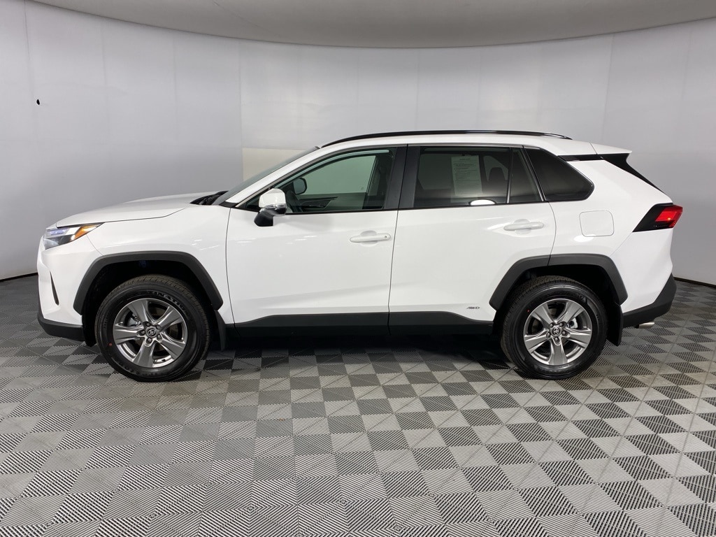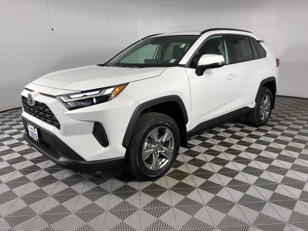 Certified. 2025 Toyota RAV4 Hybrid XLE White Clean CARFAX. 4-Wheel Disc Brakes, 6 Speakers, Air Conditioning, Auto High-beam Headlights, Bumpers: body-color, Driver door bin, Dual front impact airbags, Dual front side impact airbags, Electronic Stability Control, Exterior Parking Camera Rear, Fabric Seat Trim, Four wheel independent suspension, Front Bucket Seats, Front Center Armrest, Front dual zone A/C, Fully automatic headlights, Heated door mirrors, Illuminated entry, Knee airbag, Occupant sensing airbag, Outside temperature display, Overhead airbag, Panic alarm, Passenger vanity mirror, Power door mirrors, Power driver seat, Power windows, Radio data system, Radio: AM/FM/XM Audio System, Rear seat center armrest, Rear window defroster, Split folding rear seat, Steering wheel mounted audio controls, Telescoping steering wheel, Tilt steering wheel, Traction control, Trip computer, Turn signal indicator mirrors. 41/38 City/Highway MPG