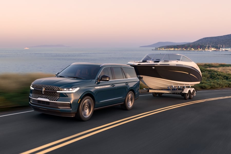 The Lincoln Navigator® SUV can make light work of heavy tasks with its ability to tow up to 8,700 lbs. * The available Heavy-Duty Trailer Tow Package adds Smart Trailer Tow, Trailer Brake Controller, Trailer Sway Control, and includes an additional Lincoln Drive mode, Slow Climb, to help avoid overheating when ascending a steep grade.