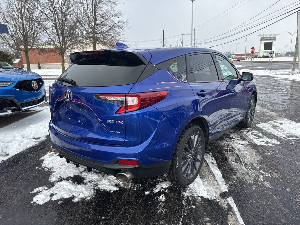 Apex Blue Pearl 2022 Acura RDX A-Spec Advance Package SH-AWD AWD 10-Speed Automatic 2.0L 16V DOHC AWD, Apple CarPlay/Android Auto, Auto High-beam Headlights, Auto-dimming Rear-View mirror, Brake assist, Emergency communication system: AcuraLink, Front Bucket Seats, Fully automatic headlights, Heads-Up Display, Heated & Ventilated Front Sport Seats, Heated door mirrors, Heated front seats, Heated rear seats, Heated steering wheel, Lane departure: Lane Keeping Assist System (LKAS) active, Memory seat, Navigation system: Acura Navigation System with 3D View, Power door mirrors, Power driver seat, Power Liftgate, Power moonroof, Power passenger seat, Premium audio system: Acura/ELS Studio 3D, Rear window defroster, Remote keyless entry, Steering wheel mounted audio controls, Turn signal indicator mirrors, Ventilated front seats.