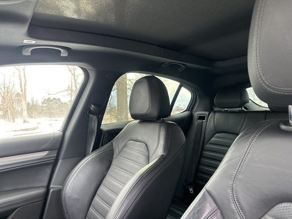 Stelvio Veloce Ti, AWD, 115V Auxiliary Power Outlet, Active Assist Plus Package, Active Blind Spot Assist, Aluminum Interior Trim, Aluminum Steering Column Mounted Paddle Shifters, Apple CarPlay/Android Auto, Body Color Appearance Kit, Dark Miron V Scudetto Grille, Driver Attention Alert, Front dual zone A/C, Gloss Black Window Surround Moldings, Gloss Red Calipers w/White Script, harman/kardon Premium Audio, Heated front seats, Heated rear seats, Highway Assist System, Intelligent Speed Assist (ISA), Lane Keep Assist, Leather Dash & Upper Doors, Limited Slip Differential Rear Axle, Memory seat, Navigation System, Power 8-Way Adjustable Driver Seat, Power Adjust 8-Way Front Passenger Seat, Power Adjustable Bolster, Power driver seat, Power Liftgate, Power moonroof, Premium Interior & Sound Package, Quick Order Package 22S Veloce, Sport Leather Seats, Sport Rear Diffuser, Traffic Jam Assist, Traffic Sign Recognition, Wheels: 20" x 8.5" Sport 5-Hole Aluminum. Recent Arrival!
