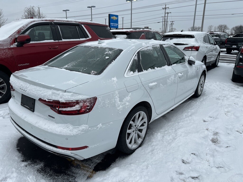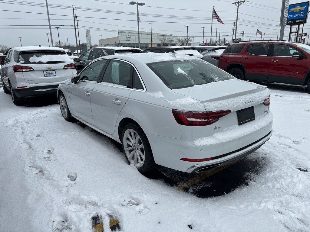 Glacier White 2019 Audi A4 2.0T Premium Plus quattro quattro 7-Speed Automatic S tronic 2.0L I4 TFSI DOHC 7-Speed Automatic S tronic, quattro, Brown Leather, 18" Wheel Package, Alarm System w/Motion Sensor, All-Weather Floor Mats, Audi Advanced Key, Audi Connect PRIME & PLUS, Audi MMI Navigation Plus w/MMI Touch, Audi Pre Sense Rear, Audi Side Assist w/Rear Cross Traffic Assist, Audi Virtual Cockpit, Auto-Dimming Exterior Mirrors, Cold Weather Package, Convenience Package, Convenience Package Credit, Heated Rear Seats, Heated Steering Wheel, Leatherette Covered Center Console & Door Armrests, LED Headlights, Memory for Driver's Seat, Parking System Plus, Power Folding Exterior Mirrors, Premium Plus Package, SiriusXM Satellite Radio, Wheels: 18" 10-Spoke-V Design.