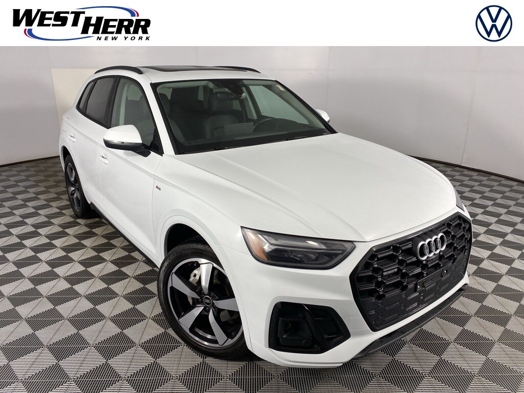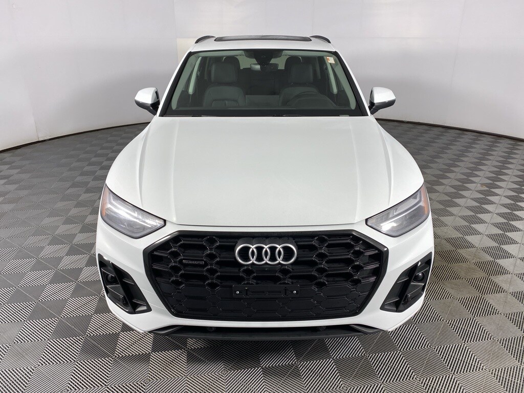 2023 Audi Q5 45 S line Premium quattro Glacier White Metallic Audi Active Lane Assist, Audi Advanced Key, Audi Connect PLUS, Audi Virtual Cockpit Plus, Auto-Dimming Power Folding Exterior Mirrors, Automatic temperature control, Bang & Olufsen Sound System w/3D Sound, Black Exterior Trim, Black Optic Package, Black Roof Rails, Convenience Package, Driver Seat Memory, Exterior Parking Camera Rear, Four wheel independent suspension, Front dual zone A/C, Gray-Brown Birch Natural Wood Inlays, Hands-On Detection Steering Wheel, Heated front seats, Heated Steering Wheel, Leather Seating Surfaces, Leatherette Covered Center Console & Door Armrests, MMI Navigation Plus, Navigation Package, Panoramic Sunroof, Power Adjustable Steering Column, Power Liftgate, Premium Plus Package, SiriusXM w/360L, Steering wheel mounted audio controls, Top View Camera System, Traffic Jam Assist, Variably intermittent wipers, Wheels: 19" 5-Double-Arm Design Bi-Color Finish, Wheels: 20" 5-Arm Cutter Design, Bi-Color Finish. 22/29 City/Highway MPG