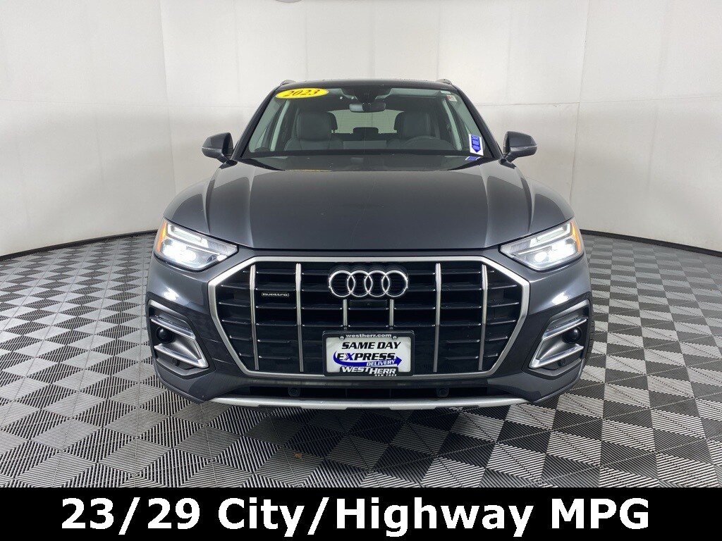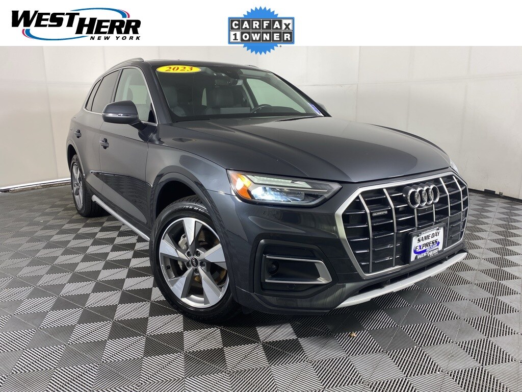 2023 Audi Q5 40 Premium Plus quattro CARFAX One-Owner. Clean CARFAX. All-Weather Floor Mats, Audi Active Lane Assist, Audi Advanced Key, Audi Beam-Rings, Audi Guard Protection Kit, Audi Virtual Cockpit Plus, Auto-Dimming Power Folding Exterior Mirrors, Automatic temperature control, Bang & Olufsen Sound System w/3D Sound, Cargo Mat, Convenience Package, Driver Seat & Mirror Memory, Electronic Stability Control, Exterior Parking Camera Rear, Front fog lights, Garage door transmitter: HomeLink, Hands-On Detection Steering Wheel, Heated front seats, Heated Steering Wheel, Leather Seating Surfaces, Leatherette Covered Center Console & Door Armrests, Manual Rear Side Window Sunshades, Panoramic Sunroof, Power Adjustable Steering Column, Power Liftgate, Premium Plus Package, Remote keyless entry, SiriusXM w/360L, Split folding rear seat, Steering wheel mounted audio controls, Top View Camera System, Traffic Jam Assist, Ventilated Front Sport Seats w/4-Way Power Lumbar, Warm Weather Package, Wheels: 19" 5-Arm-Pylon Design w/Matte Finish.