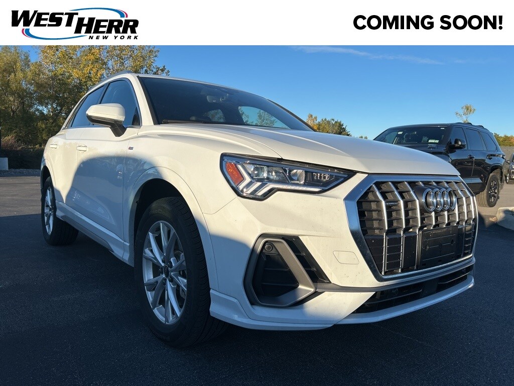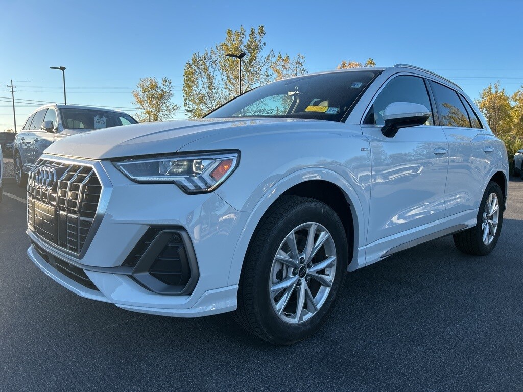 Certified. 2025 Audi Q3 S Line quattro Glacier White Metallic Alarm w/Motion Sensor, Audi Advanced Key, Auto-Dimming Power-Folding Exterior Mirrors, Auto-Dimming Rear-View Mirror, Convenience Package, Driver Seat Memory, Garage Door Opener (HomeLink), LED Interior Lighting Package, SiriusXM, Wireless Phone Charging Pad.