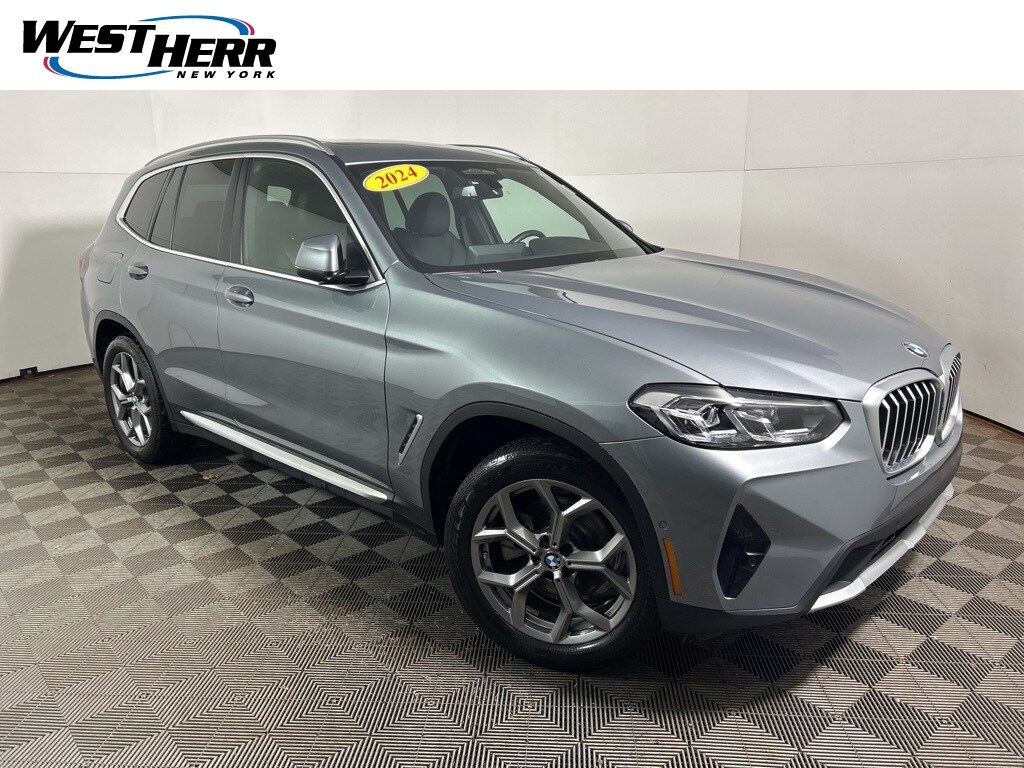 CARFAX One-Owner. Clean CARFAX. 2024 BMW X3 xDrive30i Skyscraper Gray Metallic 8-Speed Automatic Sport, Active Driving Assistant Pro, Active Park Distance Control, Connected Package Pro, Driving Assistance Professional Package, Extended Traffic Jam Assistant, Head-Up Display, Heated Front Seats, Heated Steering Wheel, Live Cockpit Pro w/Navigation, Lumbar Support, Navigation, Navigation System, Panoramic Moonroof, Parking Assistance Package, Parking Assistant Plus, Premium Package, Rear-View Camera, Surround View w/3D View.