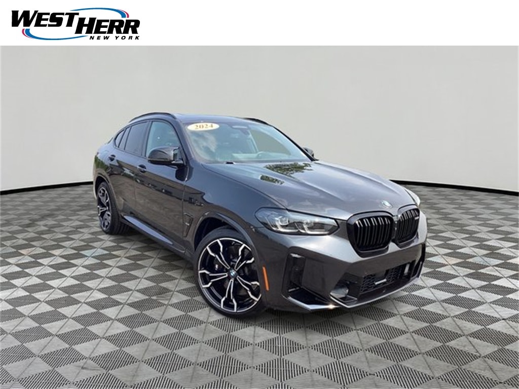Black Sapphire Metallic 2024 BMW X4 M AWD 8-Speed Automatic Sport 3.0L I6 Turbocharged DOHC 24V LEV3-ULEV125 473hp Active Driving Assistant Pro, Competition Package, Competition Package (7MA), Connected Package Pro, Driving Assistance Professional Package, Executive Package, Extended Merino Leather Upholstery, Extended Shadowline Trim, Extended Traffic Jam Assistant, Front & Rear Heated Seats, Gesture Control, Head-Up Display, Heated Steering Wheel, M Competition Package, M Driver's Package, M Seat Belts, M Sport Exhaust System, M Sport Seats, Parking Assistant Plus, Wheels: 21" x 9.5" Fr & 21" x 10" Rr M Dbl-Spoke.
