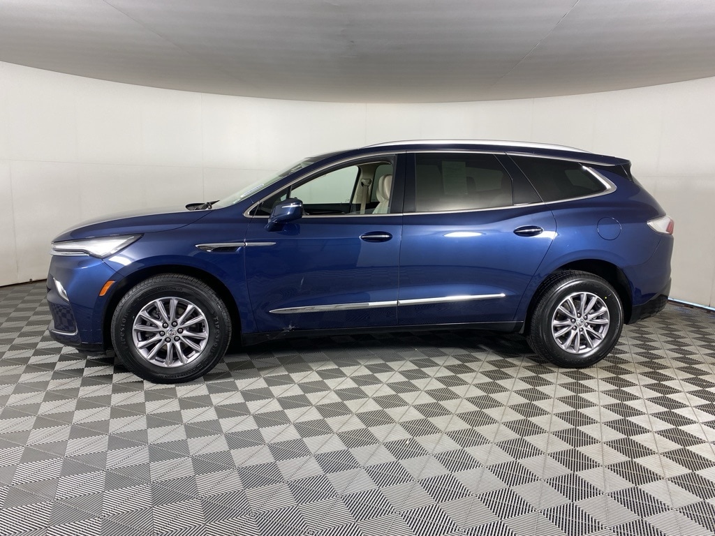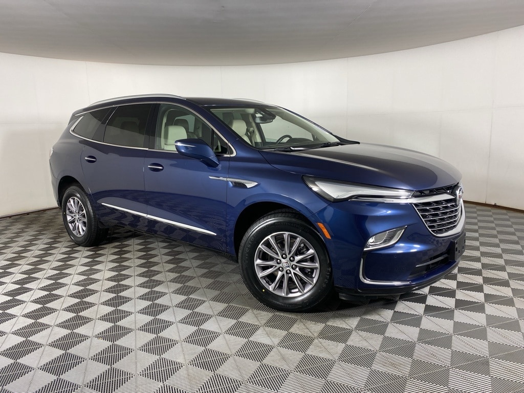 Enclave Essence, 4D Sport Utility, 3.6L V6 SIDI VVT, 9-Speed Automatic, AWD, Emperor Blue Metallic, Whisper Beige Seats With Ebony Interior Accents Leather, 18" Aluminum Wheels, 4-Wheel Disc Brakes, 6 Speakers, 6-Speaker Audio System Feature, 6-Way Power Front Passenger Seat Adjuster, Alloy wheels, Auto High-beam Headlights, Automatic temperature control, Dual front impact airbags, Dual front side impact airbags, Electronic Stability Control, Front & Rear Park Assist, Front Bucket Seats, Front Center Armrest, Front dual zone A/C, Front Mounting License Plate Bracket Package, Heated door mirrors, Heated Driver & Front Passenger Seats, Heated Steering Wheel, Perforated Leather-Appointed Seat Trim, Power door mirrors, Power driver seat, Power Liftgate, Power Passenger Lumbar Control Seat Adjuster, Power passenger seat, Preferred Equipment Group 1SL, Premium audio system: Buick Infotainment System, Radio: Buick Infotainment System AM/FM Stereo, Rear air conditioning, Rear window wiper, Remote keyless entry, SiriusXM w/360L, Speed-sensing steering, Steering wheel mounted audio controls, Turn signal indicator mirrors, Wireless Apple CarPlay/Wireless Android Auto. 2023 Buick Enclave Essence Emperor Blue Metallic
