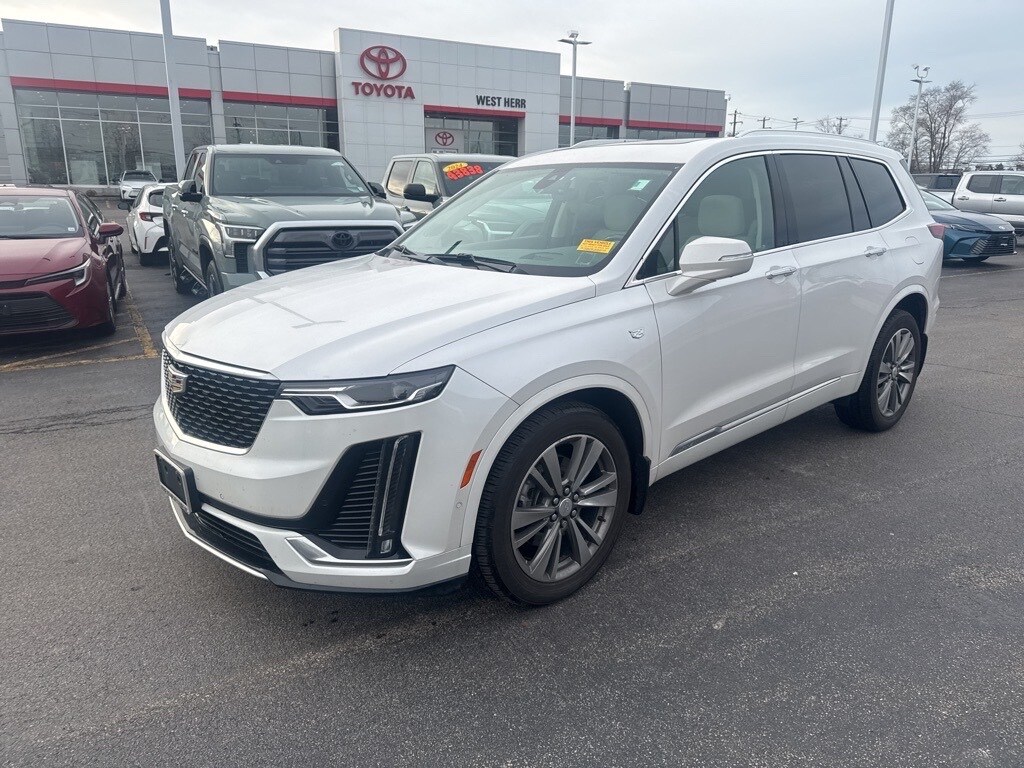 2021 Cadillac XT6 Premium Luxury Crystal White Tricoat Clean CARFAX. 2-Way Power Driver Lumbar Control Seat Adjuster, 2-Way Power Passenger Lumbar Control Seat Adjuster, 3rd row seats: split-bench, 6-Passenger Seating, 8 Speakers, 8" Color Driver Information Center Display, ABS brakes, Air Conditioning, AM/FM radio: SiriusXM with 360L, Auto High-beam Headlights, Auto tilt-away steering wheel, Automatic Parking Assist w/Braking, Automatic Stop/Start w/Disable, Bose Premium 8-Speaker Audio System, Bumpers: body-color, Driver & Front Passenger Heated Seats, Driver vanity mirror, Dual Driver Info Center Display Gauge Cluster, Dual front impact airbags, Dual front side impact airbags, Electronic Stability Control, Enhanced Visibility & Technology Package, Exterior Parking Camera Rear, Front Bucket Seats, Front Center Armrest, Front dual zone A/C, Fully automatic headlights, Gloss Black Front & Rear Splash Guards (LPO), HD Surround Vision, Head-Up Display, Heated door mirrors, Heated front seats, Illuminated entry, Knee airbag, Leather Seating Surfaces w/Mini-Perforated Inserts, Memory seat, Occupant sensing airbag, Overhead airbag, Overhead console, Panic alarm, Passenger vanity mirror, Power moonroof: UltraView, Power passenger seat, Power windows, Radio data system, Rear Camera Mirror, Rear Camera Mirror Washer, Rear Pedestrian Alert, Rear window defroster, Ride & Handling Suspension, Speed control, Split folding rear seat, Spoiler, Steering wheel mounted audio controls, Surround Vision Recorder, Tachometer, Telescoping steering wheel, Tilt steering wheel, Traction control, Trip computer.