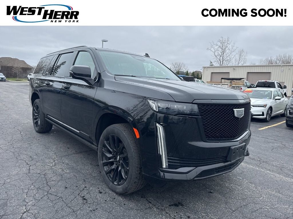 Black Raven 2023 Cadillac Escalade ESV Sport AWD 10-Speed Automatic 6.2L V8 AWD, 3rd row seats: split-bench, Adaptive Cruise Control, Air Ride Adaptive Suspension, AKG Studio 19-Speaker Audio System, All-Weather Floor Liner Package (LPO), Automatic Seat Belt Tightening, Body-Color Door Handles, Door Lock & Latch Shields, Electronic Limited-Slip Differential, Enhanced Automatic Emergency Braking, Enhanced Automatic Parking Assist, Exterior Parking Camera Rear, Front Bucket Seats, Glass Breakage Sensor, Gloss Black Escalade Nameplate (LPO), Heads-Up Display, Heated & Ventilated Driver & Front Passenger Seats, Heated Driver & Front Passenger Seats, Heated front seats, Heated rear seats, Heated steering wheel, Hitch Guidance w/Hitch View, Illuminating Front & Rear Sill Plates, Integrated Trailer Brake Controller, Memory seat, Monochrome Cadillac Emblems (LPO), Navigation System, Onyx Package (LPO), Power driver seat, Power Liftgate, Power Panoramic Tilt-Sliding Sunroof, Power passenger seat, Preferred Equipment Group 1SC, Puddle Lamps w/Cadillac Crest (LPO), Rear Camera Mirror, Rear Camera Mirror Washer, Rear Cross Traffic Alert, Reconfigurable Full-Color Head-Up Display, Reverse Automatic Braking, Running Board Assist Steps, Smart Trailer Integration Indicator, Soft Closing Front & Rear Doors, Steering wheel mounted audio controls, Theft-Deterrent Alarm System, Touring Package, Trailer Side Blind Zone Alert, Vehicle Inclination Sensor, Vehicle Interior Movement Sensor, Ventilated front seats, Wheels: 22" 12-Spoke Gloss Black Alloy (LPO), Wheels: 22" Interim (LPO).