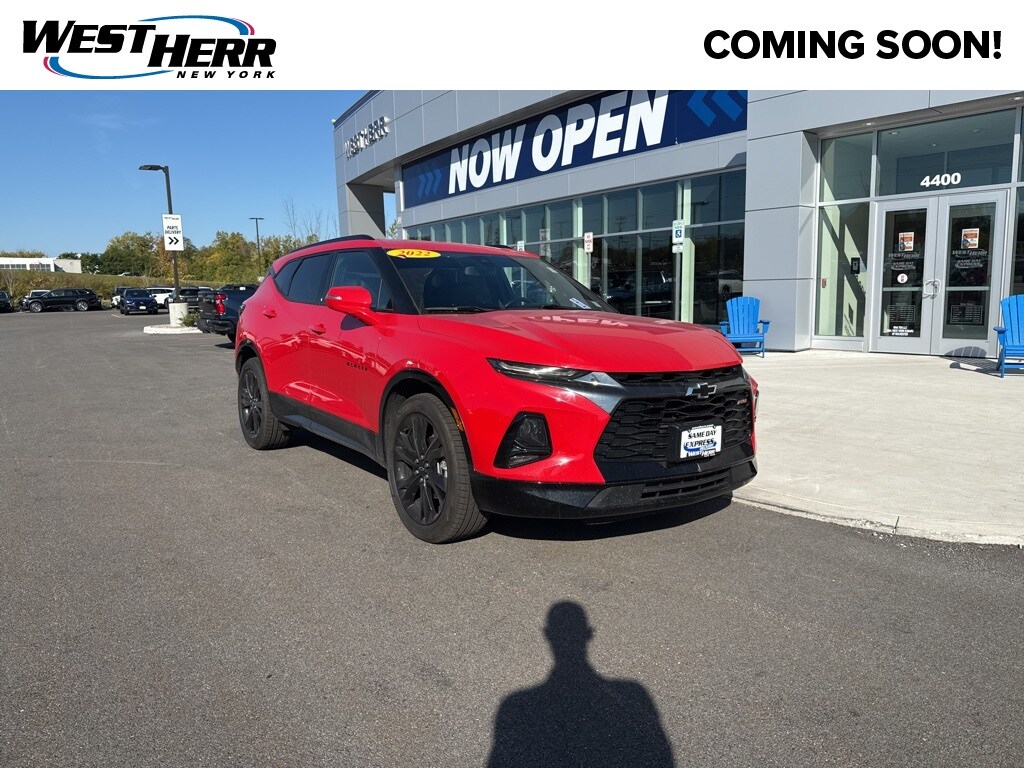 Red Hot 2022 Chevrolet Blazer RS AWD 9-Speed Automatic with Overdrive 3.6L V6 SIDI Blazer RS, 4D Sport Utility, 3.6L V6 SIDI, 9-Speed Automatic with Overdrive, AWD, Red Hot, Jet Black Leather, Apple CarPlay/Android Auto, Auto High-beam Headlights, Emergency communication system: OnStar and Chevrolet connected services capable, Exterior Parking Camera Rear, Four wheel independent suspension, Heated door mirrors, Heated Driver & Front Passenger Seats, Heated Steering Wheel, Illuminated entry, Navigation System, Perforated Leather-Appointed Seat Trim, Power Liftgate, Preferred Equipment Group 1RS.