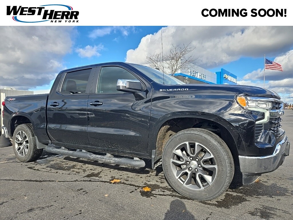 Silverado 1500 LT, 4D Crew Cab, 2.7L Turbo, 8-Speed Automatic, 4WD, Black, Jet Black w/Cloth Seat Trim, 10-Way Power Driver Seat w/Lumbar, 12.3" Multicolor Reconfigurable Digital Display, 120-Volt Bed Mounted Power Outlet, 120-Volt Instrument Panel Power Outlet, All-Star Edition, Auto-Locking Rear Differential, Bluetooth® For Phone, Chevrolet Connected Access Capable, Chrome Mirror Caps, Color-Keyed Carpeting Floor Covering, Compass, Convenience Package, Deep-Tinted Glass, Dual Rear USB Ports (Charge Only), Dual-Zone Automatic Climate Control, Electrical Steering Column Lock, Electronic Cruise Control, Front Frame-Mounted Black Recovery Hooks, HD Rear Vision Camera, Heated Driver & Front Outboard Passenger Seats, Heated Steering Wheel, High Capacity Suspension Package, Hitch Guidance, Keyless Open & Start, Leather Wrapped Steering Wheel, LED Cargo Area Lighting, Manual Tilt/Telescoping Steering Column, OnStar & Chevrolet Connected Services Capable, Power Front Windows w/Driver Express Up/Down, Power Front Windows w/Passenger Express Down, Power Rear Windows w/Express Down, Preferred Equipment Group 2FL, Rear 60/40 Folding Bench Seat (Folds Up), SiriusXM w/360L, Standard Suspension Package, Steering Wheel Audio Controls, Trailering Package, Wi-Fi Hot Spot Capable, Wireless Phone Projection.