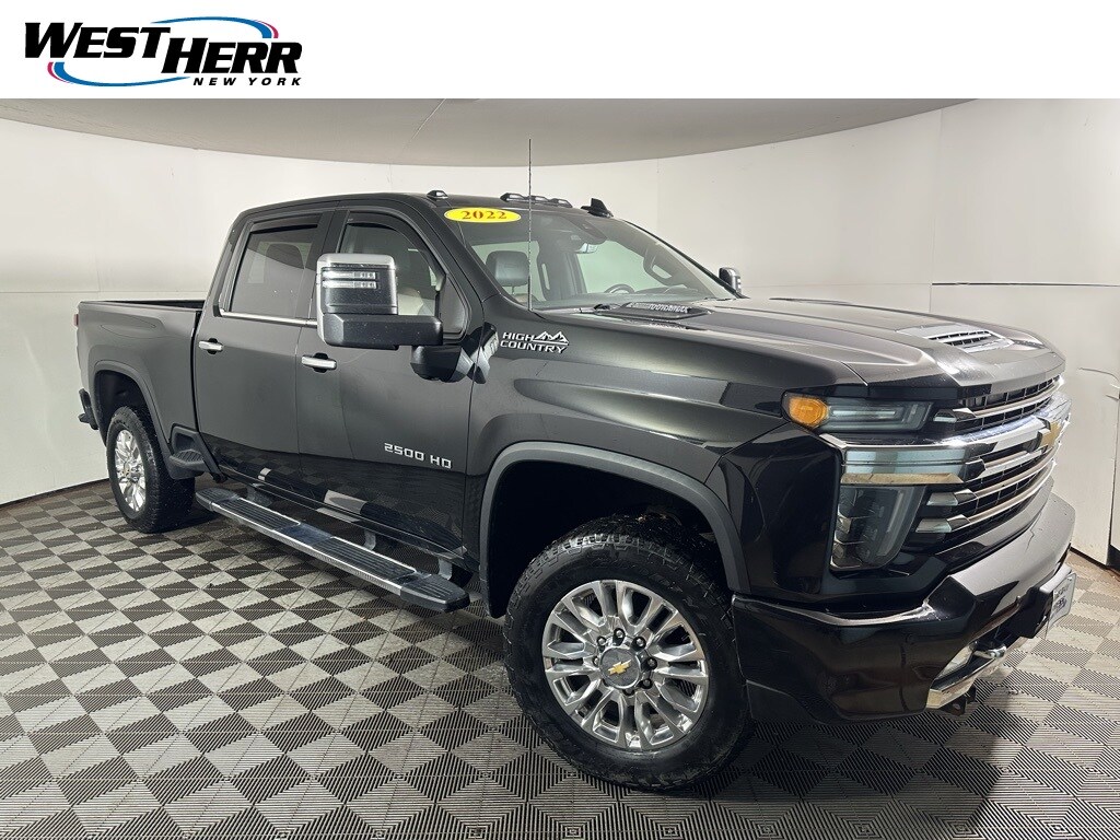 CARFAX One-Owner. Clean CARFAX. 2022 Chevrolet Silverado 2500HD High Country Mosaic Black Metallic 10-Speed Automatic, 4WD, Jet Black w/Leather-Appointed Front Outboard Seat Trim, 12-Volt Rear Auxiliary Power Outlet, 120-Volt Bed Mounted Power Outlet, 120-Volt Instrument Panel Power Outlet, 15" Diagonal Multicolor Head-Up Display, 170 Amp Alternator, 220 Amp Alternator, 6" Rectangular Chromed Tubular Assist Steps, 8" Driver Information Center, Advanced Trailering System, Auto-Dimming Inside Rear-View Mirror, Automatic Emergency Braking, Bed View Camera w/2 Trailer Camera Provisions, Black Chevytec Spray-On Bedliner w/Chevrolet Logo, Bluetooth® For Phone, Chevrolet Connected Access Capable, Chrome Front Grille, Chrome Mirror Caps, Color-Keyed Carpeting Floor Covering, Compass, Deep-Tinted Glass, Dual Charge-Only USB Ports (2nd Row), Electric Rear-Window Defogger, Electrical Lock Control Steering Column, Electronic Cruise Control w/Set & Resume Speed, Following Distance Indicator, Forward Collision Alert, Front Carpeted Floor Mats, Front Chrome Recovery Hooks, Front LED Fog Lamps, HD Surround Vision w/2 Trailer View Camera Provisions, Heated & Auto-Dim Pwr Vertical Trailering Mirrors, Heated Steering Wheel, Hill Descent Control, Hitch Guidance w/Hitch View, Integrated Trailer Brake Controller, IntelliBeam Automatic High Beam On/Off, Keyless Open & Start, Lane Change Alert w/Side Blind Zone Alert, Lane Departure Warning System, Leather-Wrapped Steering Wheel, LED Cargo Area Lighting, Manual Tilt & Telescoping Steering Column, Off-Road Suspension, OnStar & Chevrolet Connected Services Capable, Polished Exhaust Tip, Power Door Locks, Power Front Windows w/Driver Express Up/Down, Power Front Windows w/Passenger Express Up/Down, Power Rear Windows w/Express Down, Power Sliding Rear Window w/Defogger, Preferred Equipment Group 3LZ, Rear Camera Mirror, Rear Carpeted Floor Mats, Rear Cross Traffic Alert, Rear Wheelhouse Liners, Remote Vehicle Starter System, Safety Alert Seat, Safety Package II, SiriusXM w/360L, Snow Plow Prep/Camper Package, Standard Tailgate, Steering Wheel Audio Controls, Suspension Package, Technology Package, Ultrasonic Front & Rear Park Assist, Unauthorized Entry Theft-Deterrent System, Universal Home Remote, Up-Level Rear Seat w/Storage Package, Wi-Fi Hotspot Capable, Wireless Charging, Wireless Phone Projection, Z71 Off-Road Package.