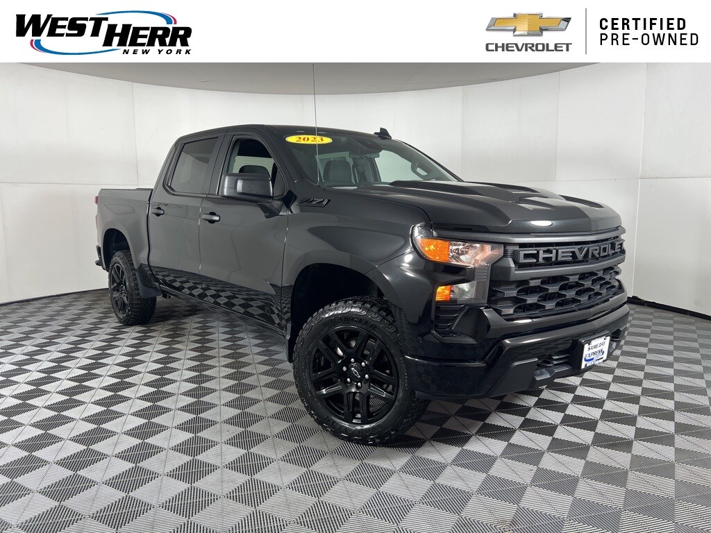 Professionally Detailed, NEW Oil & Filter Change, Clean Carfax 1-Owner, 10-Way Power Driver Seat w/Lumbar, 120-Volt Bed Mounted Power Outlet, 120-Volt Instrument Panel Power Outlet, 3.5" Monochromatic Display Driver Info Center, All-Weather Floor Liner (LPO) (AAK), Auto-Locking Rear Differential, Black Dual Exhaust Tips, Bluetooth® For Phone, Chevrolet Connected Access Capable, Chevytec Spray-On Black Bedliner, Color-Keyed Carpeting Floor Covering, Compass, Custom Convenience Package, Deep-Tinted Glass, Dual Rear USB Ports (Charge Only), Electric Rear-Window Defogger, Electrical Steering Column Lock, Electronic Cruise Control, EZ Lift Power Lock & Release Tailgate, Front Frame-Mounted Black Recovery Hooks, Front Rubberized Vinyl Floor Mats, HD Rear Vision Camera, Heavy-Duty Air Filter, Hill Descent Control, Hitch Guidance, LED Cargo Area Lighting, Manual Tilt Wheel Steering Column, Midnight Edition, OnStar & Chevrolet Connected Services Capable, Performance Red Recovery Hooks, Power Front Windows w/Driver Express Up/Down, Power Front Windows w/Passenger Express Down, Power Rear Windows w/Express Down, Preferred Equipment Group 2CX, Rear 60/40 Folding Bench Seat (Folds Up), Rear Rubberized-Vinyl Floor Mats, Remote Keyless Entry, Remote Vehicle Starter System, Silver-Hammer Interior Trim Kit (LPO), SiriusXM Radio, Standard Tailgate, Suspension Package, Theft Deterrent System (Unauthorized Entry), Trailering Package, Wi-Fi Hot Spot Capable, Wireless Phone Projection. CARFAX One-Owner. Clean CARFAX. Certified. 2023 Chevrolet Silverado 1500 Custom Trail Boss Black