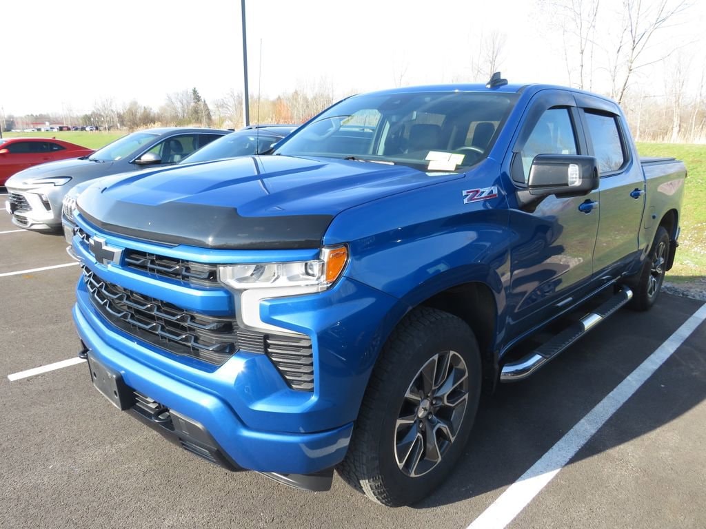 The exterior of this Silverado 1500 RST is dressed in a stunning Glacier Blue Metallic color, complemented by a wealth of premium features. The 20-inch painted aluminum wheels, LED fog lamps, and chrome accents add a touch of sophistication, while the Z71 Off-Road and Protection Package ensures you're ready for any adventure.