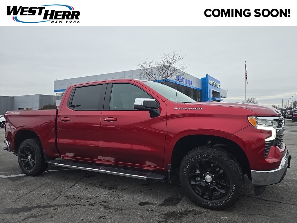 Silverado 1500 LT, 4D Crew Cab, EcoTec3 5.3L V8, 10-Speed Automatic, 4WD, Radiant Red Tintcoat, Jet Black w/Cloth Seat Trim, 10-Way Power Driver Seat w/Lumbar, 12.3" Multicolor Reconfigurable Digital Display, 120-Volt Bed Mounted Power Outlet, 120-Volt Instrument Panel Power Outlet, All-Star Edition, Auto-Locking Rear Differential, Bluetooth® For Phone, Chevrolet Connected Access Capable, Chrome Mirror Caps, Color-Keyed Carpeting Floor Covering, Compass, Convenience Package, Deep-Tinted Glass, Dual Rear USB Ports (Charge Only), Dual-Zone Automatic Climate Control, Electric Rear-Window Defogger, Electrical Steering Column Lock, Electronic Cruise Control, EZ Lift Power Lock & Release Tailgate, Front Frame-Mounted Black Recovery Hooks, Front Rubberized Vinyl Floor Mats, HD Rear Vision Camera, Heated Driver & Front Outboard Passenger Seats, Heated Power-Adjustable Outside Mirrors, Heated Steering Wheel, Hitch Guidance, Inside Rear-View Mirror w/Tilt, Keyless Open & Start, LED Cargo Area Lighting, OnStar & Chevrolet Connected Services Capable, Power Front Windows w/Driver Express Up/Down, Power Front Windows w/Passenger Express Down, Power Rear Windows w/Express Down, Preferred Equipment Group 1LT, Rear 60/40 Folding Bench Seat (Folds Up), Rear Rubberized-Vinyl Floor Mats, Remote Start Package, Remote Vehicle Starter System, SiriusXM w/360L, Standard Suspension Package, Standard Tailgate, Steering Wheel Audio Controls, Theft Deterrent System (Unauthorized Entry), Trailering Package, Wi-Fi Hot Spot Capable, Wireless Phone Projection, Wrapped Steering Wheel.