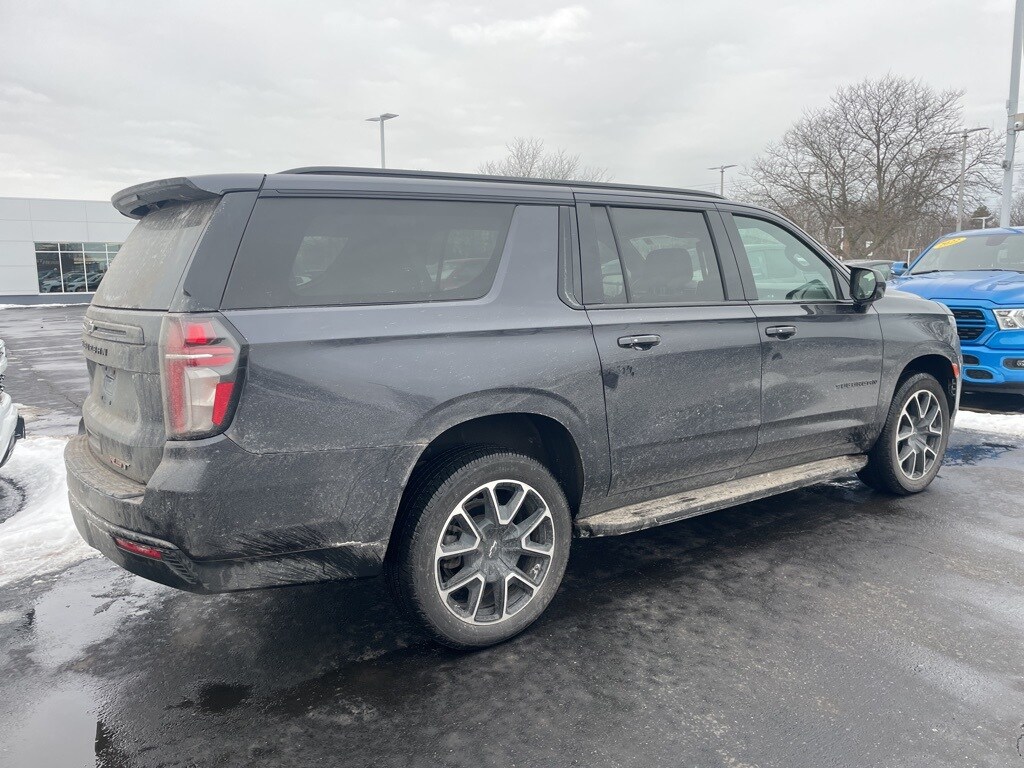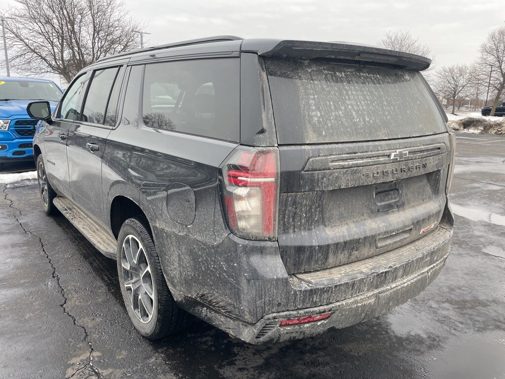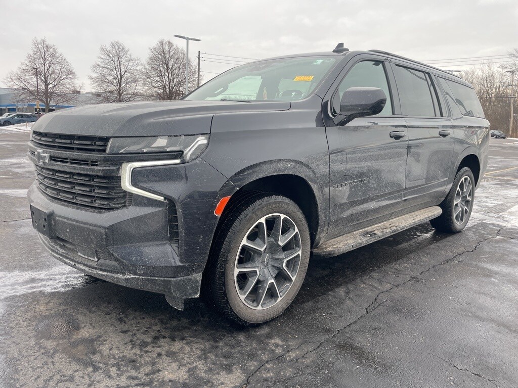 2023 Chevrolet Suburban RST Dark Ash Metallic CARFAX One-Owner. Clean CARFAX. 10-Way Power Driver & Passenger Seat Adjusters, 1st & 2nd Row Color-Keyed Carpeted Floor Mats, 4-Wheel Disc Brakes, ABS brakes, Apple CarPlay/Android Auto, Auto-Dimming Inside Rear-View Mirror, Bose 9-Speaker Stereo Audio System Feature, Bright Front & Rear Door Sill Plates, Color-Keyed Carpeting Floor Covering, Driver & Front Outboard Passenger Airbags, Dual front impact airbags, Dual front side impact airbags, Dual-Pane Power Panoramic Sunroof, Electronic Stability Control, Enhanced Driver Information Center, Floor Console w/Storage Area, Hands-Free Rear Power Programmable Liftgate, Heated Driver & Front Passenger Seats, Infotainment Display, LED Daytime Running Lamps, License Plate Front Mounting Package, Memory seat, Memory Settings For Driver, Navigation System, Occupant sensing airbag, Overhead airbag, Power Liftgate, Preferred Equipment Group 1SP, Remote keyless entry, Remote Start, SiriusXM Radio w/360L, Steering wheel mounted audio controls, Universal Home Remote, Wireless Charging, Wrapped Steering Wheel.
