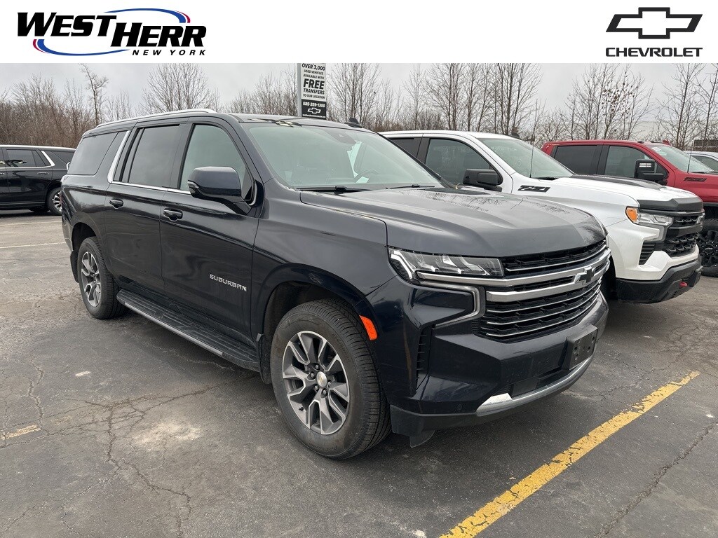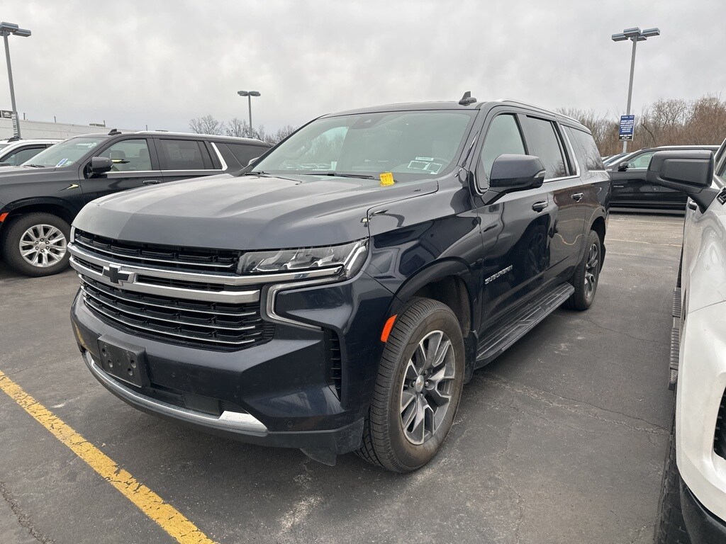 Midnight Blue Metallic 2023 Chevrolet Suburban LT 4WD 10-Speed Automatic with Overdrive EcoTec3 5.3L V8 10-Way Power Driver & Passenger Seat Adjusters, 1st & 2nd Row Color-Keyed Carpeted Floor Mats, 2nd Row Pwr Release 60/40 Split-Folding Bench Seat, 3rd Row 60/40 Power-Folding Split-Bench, Auto-Dimming Inside Rear-View Mirror, Bose 9-Speaker Stereo Audio System Feature, Bright Front & Rear Door Sill Plates, Color-Keyed Carpeting Floor Covering, Driver & Front Outboard Passenger Airbags, Driver Alert Package, Enhanced Driver Information Center, Floor Console w/Storage Area, Hands-Free Rear Power Programmable Liftgate, HD Surround Vision, Heated 2nd Row Outboard Seats, Heated Driver & Front Passenger Seats, Heated Steering Wheel, Infotainment Display, Lane Change Alert w/Side Blind Zone Alert, LED Daytime Running Lamps, License Plate Front Mounting Package, Luxury Package, Memory Settings, Memory Settings For Driver, Outside Heated Power-Adjustable Mirrors, Power Tilt & Telescopic Steering Column, Preferred Equipment Group 1LT, Rear Cross Traffic Alert, Rear Pedestrian Alert, Remote Start, SiriusXM Radio w/360L, Universal Home Remote, Wireless Charging, Wrapped Steering Wheel.