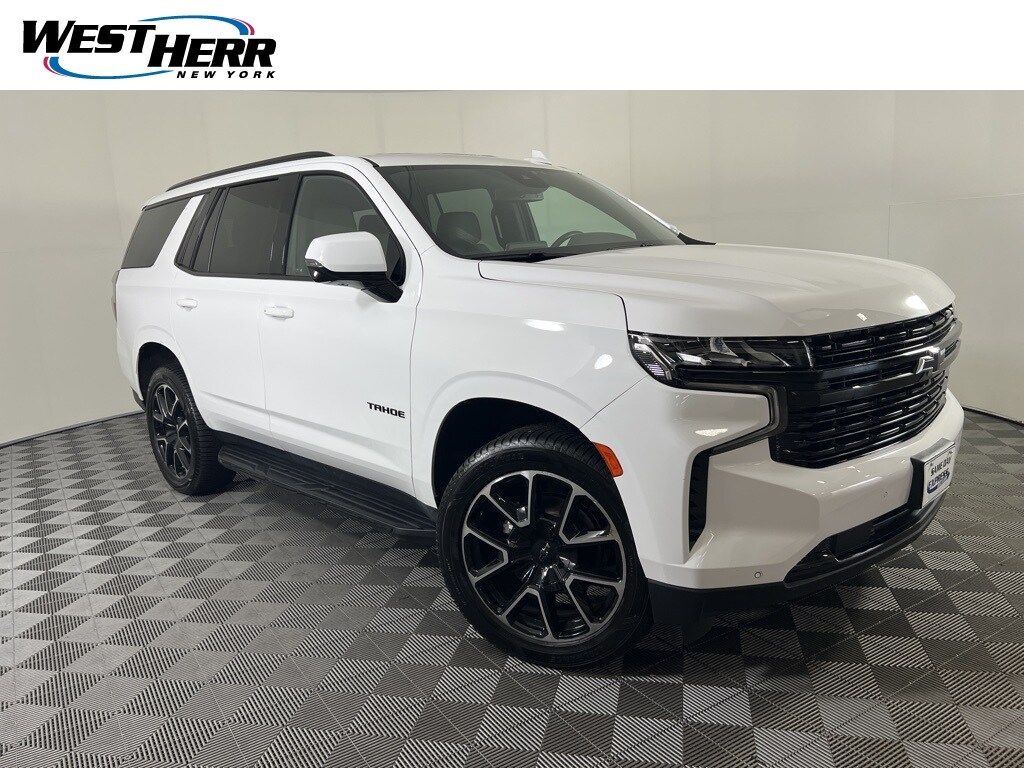 Tahoe RST, 4D Sport Utility, EcoTec3 5.3L V8, 10-Speed Automatic with Overdrive, 4WD, Summit White, Jet Black/Victory Red w/Perforated Leather Seat Trim, 1st & 2nd Row Color-Keyed Carpeted Floor Mats, 2nd Row Pwr Release 60/40 Split-Folding Bench Seat, 3rd Row 60/40 Power-Folding Split-Bench Seat, Adaptive Cruise Control, Auto-Dimming Inside Rear-View Mirror, Bose 9-Speaker Stereo Audio System Feature, Bright Front & Rear Door Sill Plates, Color-Keyed Carpeting Floor Covering, Driver & Front Outboard Passenger Airbags, Driver Alert Package, Enhanced Automatic Emergency Braking, Enhanced Driver Information Center, Floor Console w/Storage Area, Hands-Free Rear Power Programmable Liftgate, HD Surround Vision, Heated 2nd Row Outboard Seats, Heated Steering Wheel, Infotainment Display, Lane Change Alert w/Side Blind Zone Alert, LED Daytime Running Lamps, License Plate Front Mounting Package, Luxury Package, Memory Settings, Memory Settings for Driver, Outside Heated Power-Adjustable Mirrors, Power Tilt & Telescopic Steering Column, Preferred Equipment Group 1SP, Rear Cross Traffic Alert, Rear Pedestrian Alert, Remote Start, SiriusXM Radio w/360L, Universal Home Remote, Wireless Charging, Wrapped Steering Wheel.