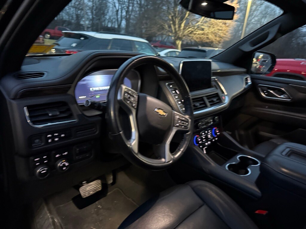 Professionally Detailed, NEW Oil & Filter Change, Clean Carfax 1-Owner, 1st & 2nd Row Color-Keyed Carpeted Floor Mats, 2-Speed Active Electronic AutoTrac Transfer Case, 2nd Row Pwr Release 60/40 Split-Folding Bench Seat, 3rd Row 60/40 Power-Folding Split-Bench Seat, Advanced Trailering Package, Auto-Dimming Inside Rear-View Mirror, Bose 9-Speaker Stereo Audio System Feature, Bright Front & Rear Door Sill Plates, Color-Keyed Carpeting Floor Covering, Driver & Front Outboard Passenger Airbags, Driver Alert Package, Dual-Pane Power Panoramic Sunroof, Enhanced Driver Information Center, Extra Capacity Cooling System, Floor Console w/Storage Area, Hands-Free Rear Power Programmable Liftgate, HD Surround Vision, Heated 2nd Row Outboard Seats, Heated Steering Wheel, Hitch Guidance w/Hitch View, Infotainment Display, Integrated Trailer Brake Controller, Lane Change Alert w/Side Blind Zone Alert, LED Daytime Running Lamps, LT Signature Package, Luxury Package, Max Trailering Package, Memory Settings, Memory Settings for Driver, Navigation System, Outside Heated Power-Adjustable Mirrors, Power Tilt & Telescopic Steering Column, Preferred Equipment Group 1LT, Rear Cross Traffic Alert, Rear Pedestrian Alert, Remote Start, SiriusXM Radio w/360L, Smart Trailer Integration Indicator, Universal Home Remote, Wireless Charging, Wrapped Steering Wheel. CARFAX One-Owner. Clean CARFAX. 2023 Chevrolet Tahoe LT Black