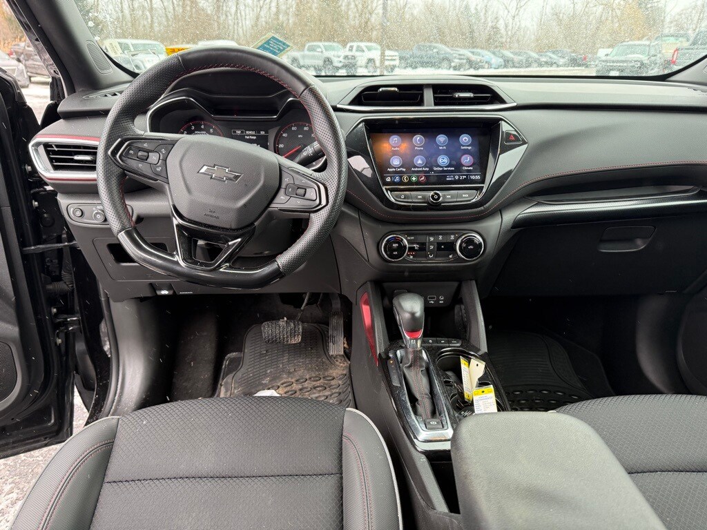 Mosaic Black Metallic 2023 Chevrolet TrailBlazer RS AWD 9-Speed Automatic 1.3L Ecotec Turbo DOHC SIDI w/VVT 1 Type-A & 1 Type-C USB Charging-Only Ports, 120-Volt Power Outlet, 6-Speaker Audio System Feature w/Amplifier, 7" Diagonal Color Touchscreen, 8-Way Power Driver Seat Adjuster, 8" Diagonal Color Touchscreen Display, Cabin Humidity Sensor, Convenience Package, Driver & Front Passenger Illuminated Vanity Mirrors, Driver Confidence Package, Emergency communication system: OnStar and Chevrolet connected services capable, Exterior Parking Camera Rear, Heated door mirrors, Heated Driver & Front Passenger Seats, Heated Steering Wheel, Inside Rear-View Auto-Dimming Mirror, Lane Change Alert w/Side Blind Zone Alert, Mosaic Black Metallic Roof, Power driver seat, Preferred Equipment Group 1RS, Radio: Chevrolet Infotainment 3 System, Rear Cross Traffic Alert, Rear Park Assist, Single-Zone Auto Climate Control Air Conditioning, SiriusXM Radio, Steering wheel mounted audio controls, Wireless Apple CarPlay/Android Auto.