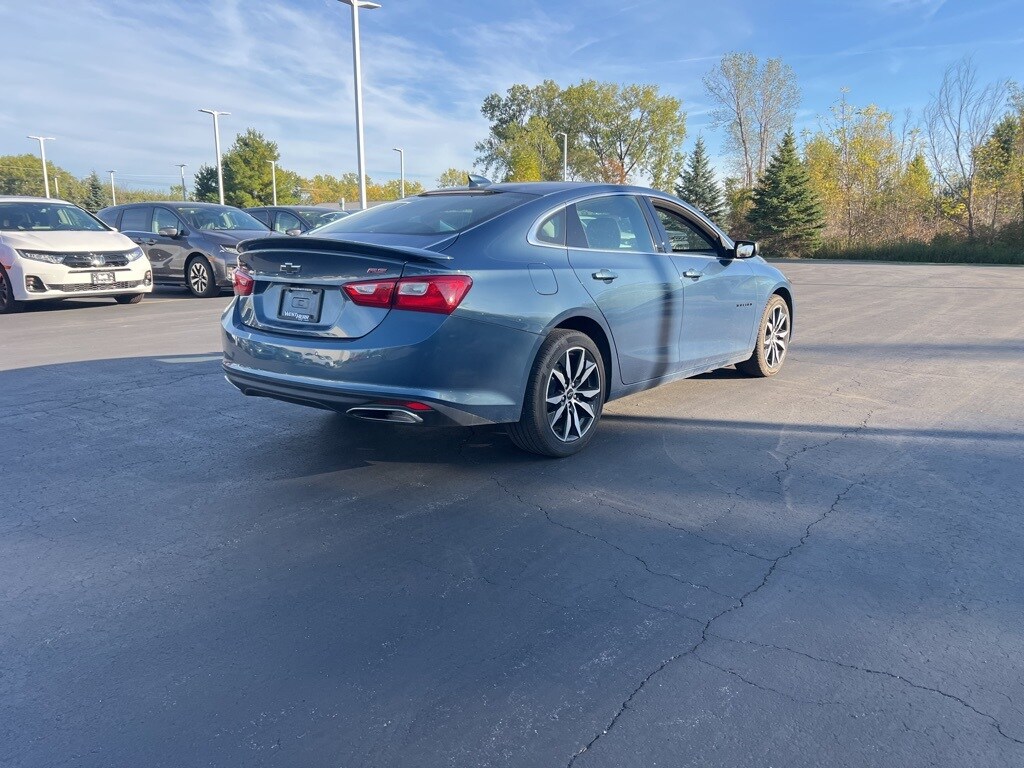 Malibu RS, 4D Sedan, 1.5L DOHC, CVT, FWD, Lakeshore Blue Metallic, Jet Black Cloth, 18" Aluminum Wheels, 4-Wheel Disc Brakes, 6 Speakers, 8-Way Power Driver Seat Adjuster, Alloy wheels, Auto High-beam Headlights, Dual front impact airbags, Dual front side impact airbags, Electronic Stability Control, Exterior Parking Camera Rear, Front Bucket Seats, Front Center Armrest, Fully automatic headlights, Lane Change Alert w/Side Blind Zone Alert, Power door mirrors, Power driver seat, Preferred Equipment Group 1SP, Premium audio system: Chevrolet Infotainment 3, Radio data system, Radio: Chevrolet Infotainment 3 System, Rear Cross Traffic Alert, Rear window defroster, Remote keyless entry, Steering wheel mounted audio controls, Wireless Apple CarPlay/Android Auto. 2024 Chevrolet Malibu RS Lakeshore Blue Metallic