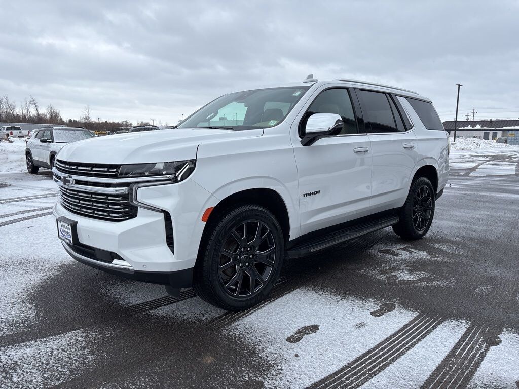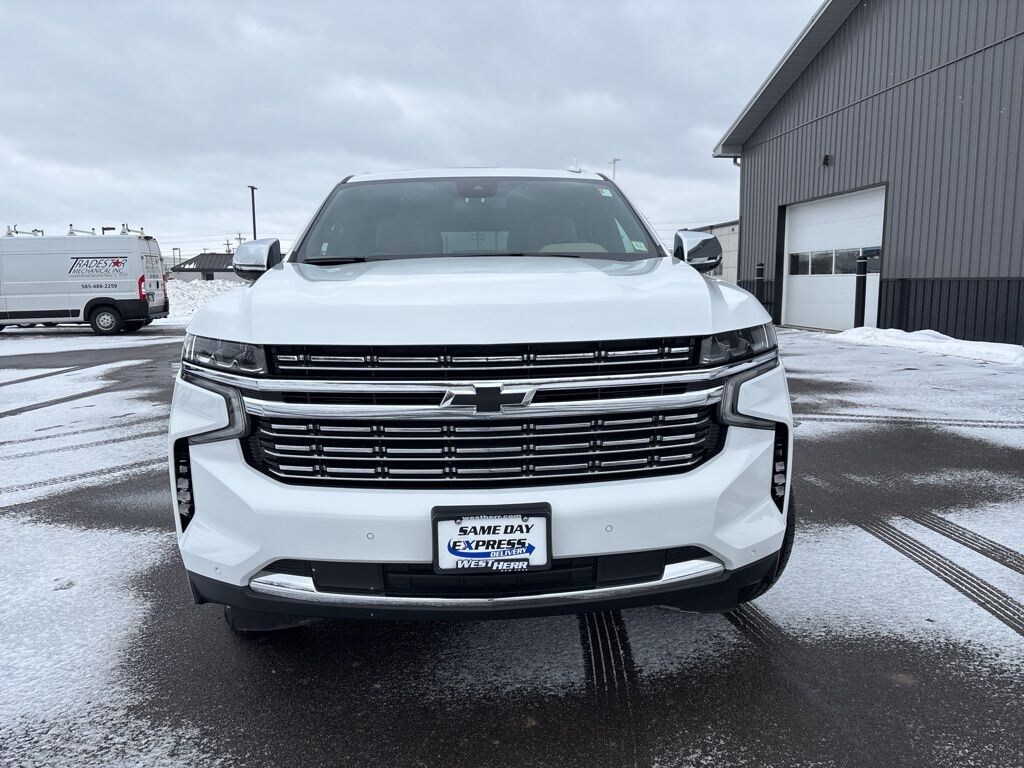 Summit White 2024 Chevrolet Tahoe Premier 4WD 10-Speed Automatic with Overdrive EcoTec3 5.3L V8 4WD, Jet Black/Maple Sugar Leather, 1st & 2nd Row Color-Keyed Carpeted Floor Mats, 2-Speed Active Electronic AutoTrac Transfer Case, 3rd Row 60/40 Power-Folding Split-Bench Seat, Auto-Dimming Inside Rear-View Mirror, Bose 10-Speaker Centerpoint Surround Audio Sys Ft, Bright Front & Rear Door Sill Plates, Chrome Door Handles w/Body-Color Strip, Chrome Mirror Caps, Color-Keyed Carpeting Floor Covering, Driver & Front Outboard Passenger Airbags, Dual Exhaust System, Enhanced Driver Information Center, Floor Console, Hands-Free Rear Power Programmable Liftgate, Heated 2nd Row Outboard Seats, Heated Steering Wheel, Hill Descent Control, Lane Change Alert w/Side Blind Zone Alert, LED Daytime Running Lamps, License Plate Front Mounting Package, Memory Settings, Outside Heated Power-Adjustable Mirrors, Power Release 2nd Row Bucket Seats, Power Tilt & Telescopic Steering Column, Preferred Equipment Group 1LZ, Rear Cross Traffic Alert, Remote Start, Safety Alert Seat, SiriusXM w/360L, Universal Home Remote, Wireless Charging, Wrapped Steering Wheel.