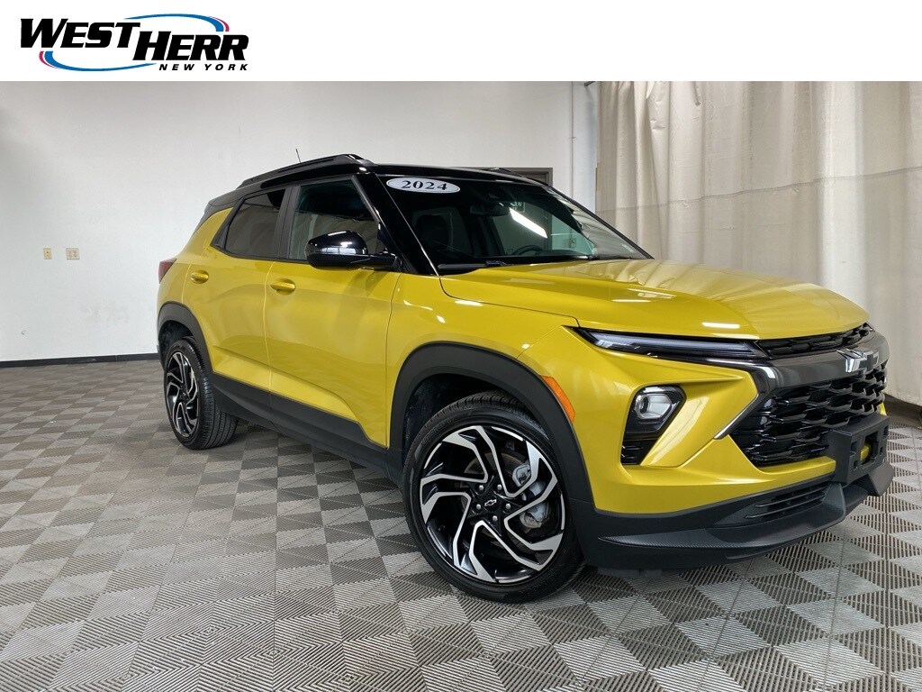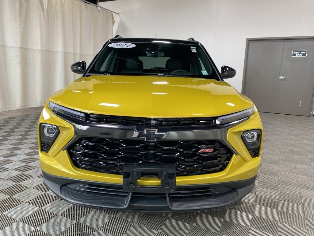 Recent Arrival! Clean CARFAX. CARFAX One-Owner. Priced below KBB Fair Purchase Price! 4D Sport Utility Nitro Yellow Metallic 2024 Chevrolet TrailBlazer 26/29 City/Highway MPG RS AWD 9-Speed Automatic 1.3L Ecotec Turbo DOHC SIDI w/VVT 26/29 City/Highway MPG ONE OWNER, CLEAN CARFAX/NO ACCIDENTS REPORTED, REMAINDER OF FACTORY WARRANTY, BLUETOOTH, BACK UP CAMERA, ALL WHEEL DRIVE, APPLE CARPLAY/ANDROID AUTO, PROFESSIONALLY DETAILED, TrailBlazer RS, 1.3L Ecotec Turbo DOHC SIDI w/VVT, AWD, 1 Type-A & 1 Type-C USB Ports, 11" Diagonal HD Color Touchscreen, 2-Way Power Driver Lumbar Seat Adjuster, 3.17 Final Drive Axle Ratio, 4-Way Manual Front Passenger Seat Adjuster, 6-Speaker Audio System Feature w/Amplifier, 8-Way Power Driver Seat Adjuster, ABS brakes, Alloy wheels, AM/FM radio: SiriusXM, Auto High-beam Headlights, Brake assist, Chevrolet Connected Access Capable, Dual front impact airbags, Dual front side impact airbags, Electronic Stability Control, Emergency communication system: OnStar and Chevrolet connected services capable, Evotex Seat Trim, Exterior Parking Camera Rear, Flat-Folding Front Passenger Seatback, Front License Plate Bracket, Fully automatic headlights, Heated door mirrors, Heated Driver & Front Passenger Seats, Heated front seats, Heated steering wheel, Illuminated entry, Knee airbag, Lane Change Alert w/Side Blind Zone Alert, Mosaic Black Metallic Two-Tone Roof, Occupant sensing airbag, Overhead airbag, Overhead console, Power door mirrors, Power windows, Radio: AM/FM Stereo Audio System, Rear Cross Traffic Alert, Rear Park Assist, Rear side impact airbag, Rear window defroster, Rear window wiper, Remote keyless entry, Ride & Handling Suspension, Security system, SiriusXM, Speed control, Steering wheel mounted audio controls, Telescoping steering wheel, Variably intermittent wipers, Wheels: 19" High Gloss Black Machined Aluminum, Wireless Apple CarPlay/Android Auto.