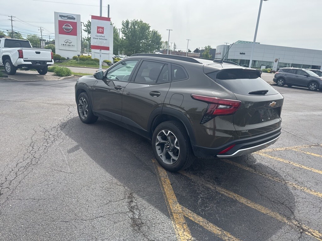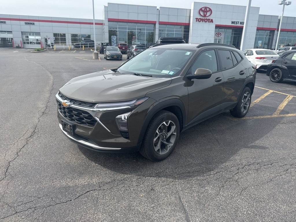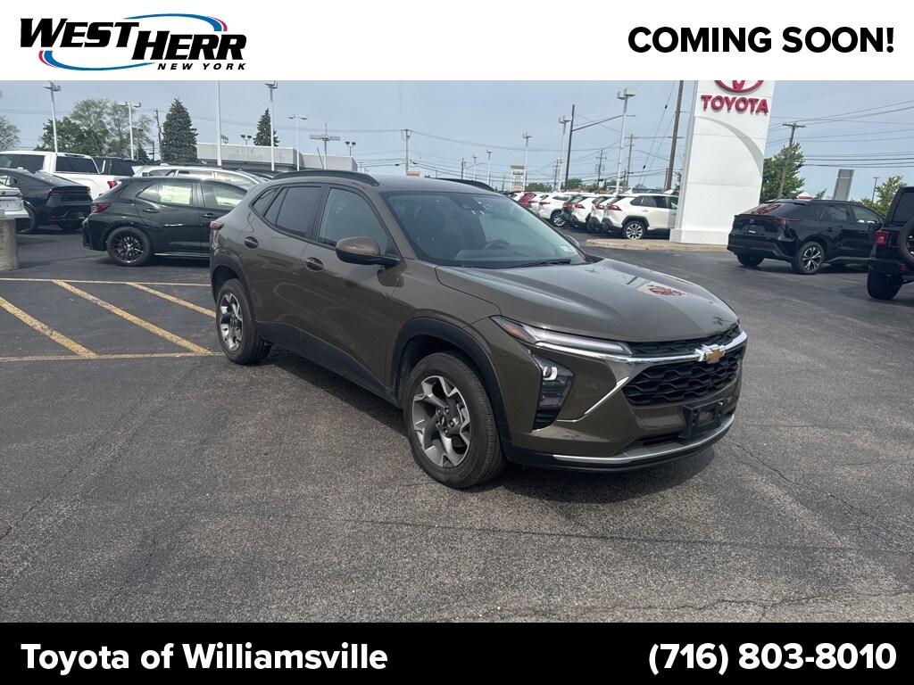 2024 Chevrolet Trax LT Harvest Bronze Metallic Clean CARFAX. CARFAX One-Owner. 2-Way Adjustable Front Head Restraints, 4-Way Manual Front Passenger Seat Adjuster, 4-Wheel Disc Brakes, 6 Speakers, 6-Speaker Audio System Feature, 6-Way Manual Driver Seat Adjuster, Adaptive Cruise Control, Air Conditioning, Auto High-beam Headlights, Brake assist, Cloth/Evotex Seat Trim, Driver Confidence Package, Driver door bin, Dual front impact airbags, Dual front side impact airbags, Front & Rear All-Weather Floor Liners (LPO), Front anti-roll bar, Front Bucket Seats, Front Center Armrest, Fully automatic headlights, Heated Driver & Front Passenger Seats, Heated Power-Adjustable Outside Mirrors, Heated Steering Wheel, Jet Black Cargo Liner (LPO), Keyless Open, Lane Change Alert w/Side Blind Zone Alert, LT Convenience Package, Occupant sensing airbag, Overhead airbag, Overhead console, Panic alarm, Power steering, Preferred Equipment Group 1LT, Premium audio system: Chevrolet Infotainment 3, Radio: Audio System w/AM/FM, Rear Cross-Traffic Alert, Rear Park Assist, Rear window defroster, Remote keyless entry, SiriusXM, Split folding rear seat, Spoiler, Steering wheel mounted audio controls, Tachometer, Telescoping steering wheel, Tilt steering wheel, Traction control, Trip computer, Wrapped Steering Wheel. 28/32 City/Highway MPG